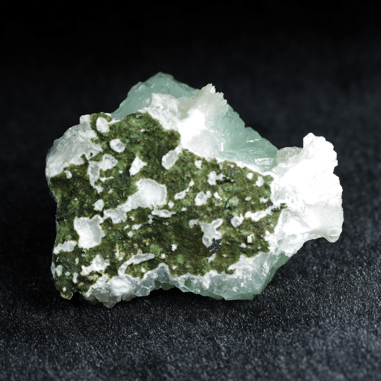 裏面を中心に緑色と白色の別の鉱物が共生しています。