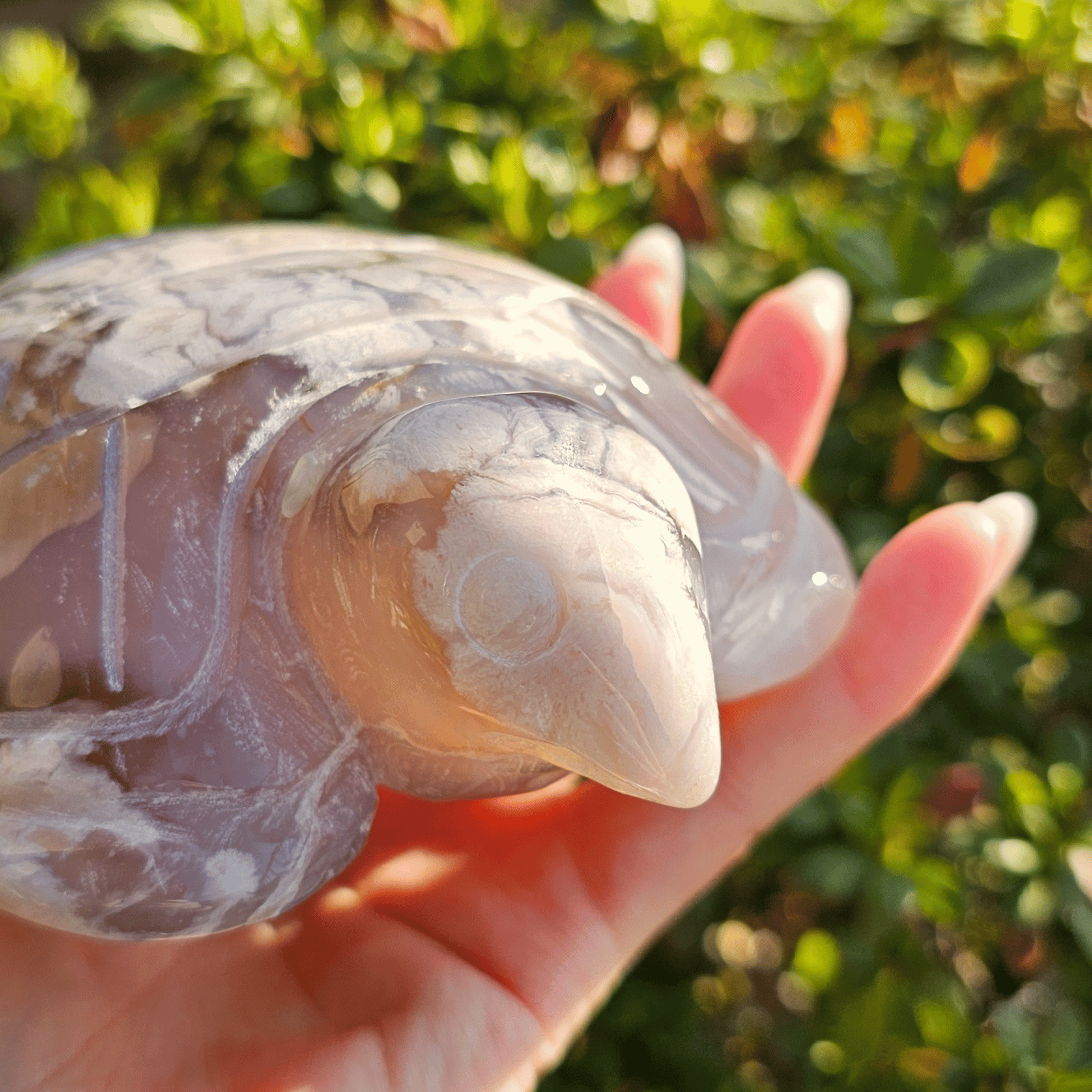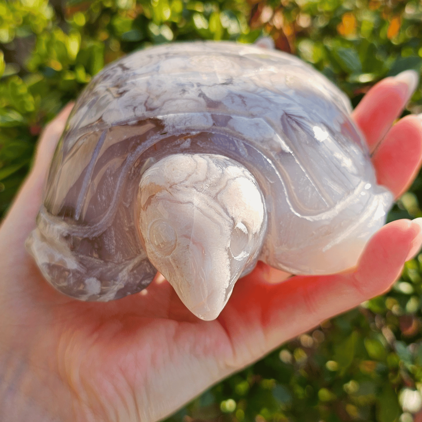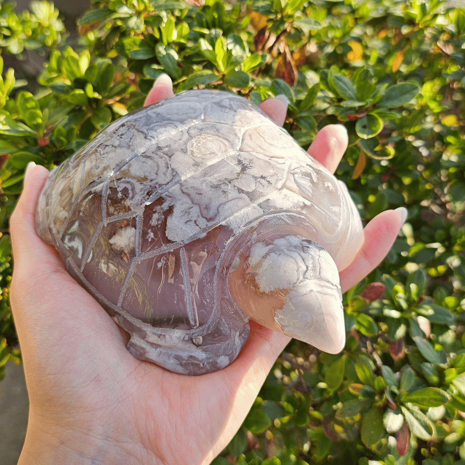 優しいグレーのアゲートに満開の桜が咲いているような美しい桜アゲートの亀です。
