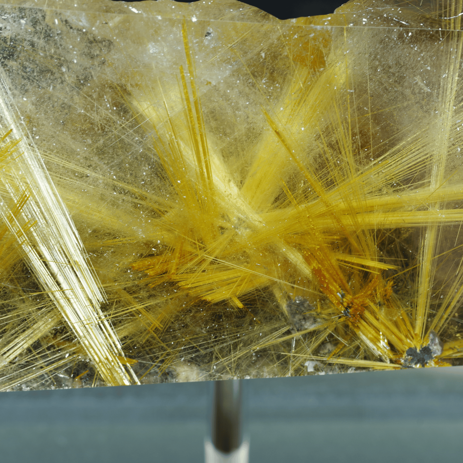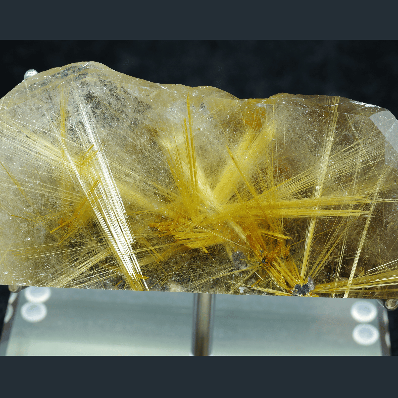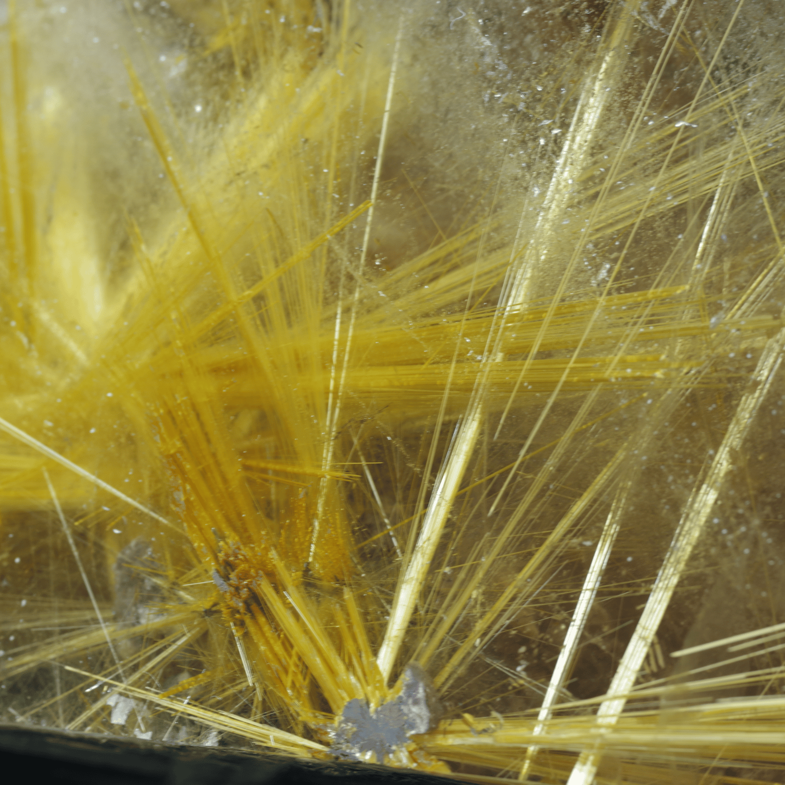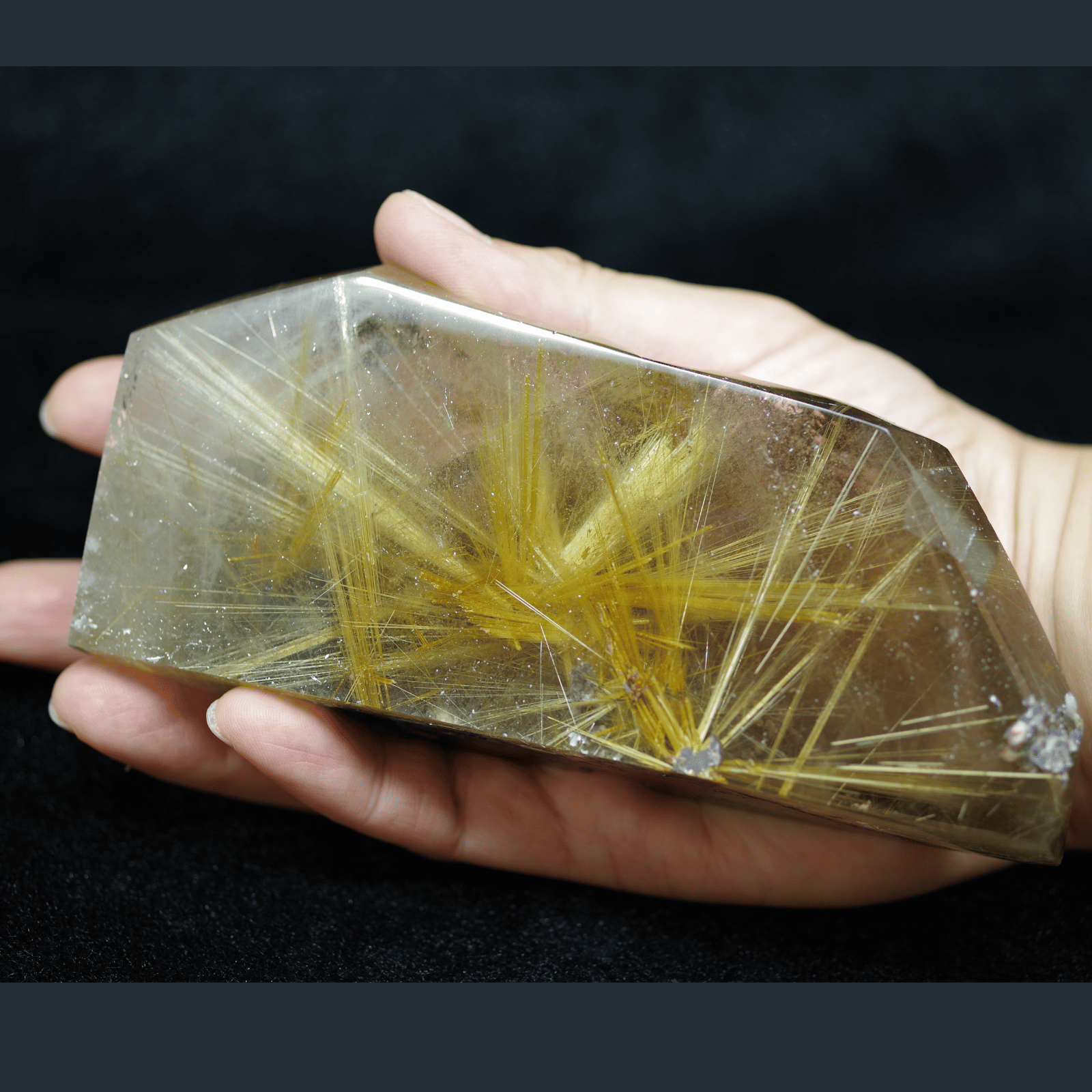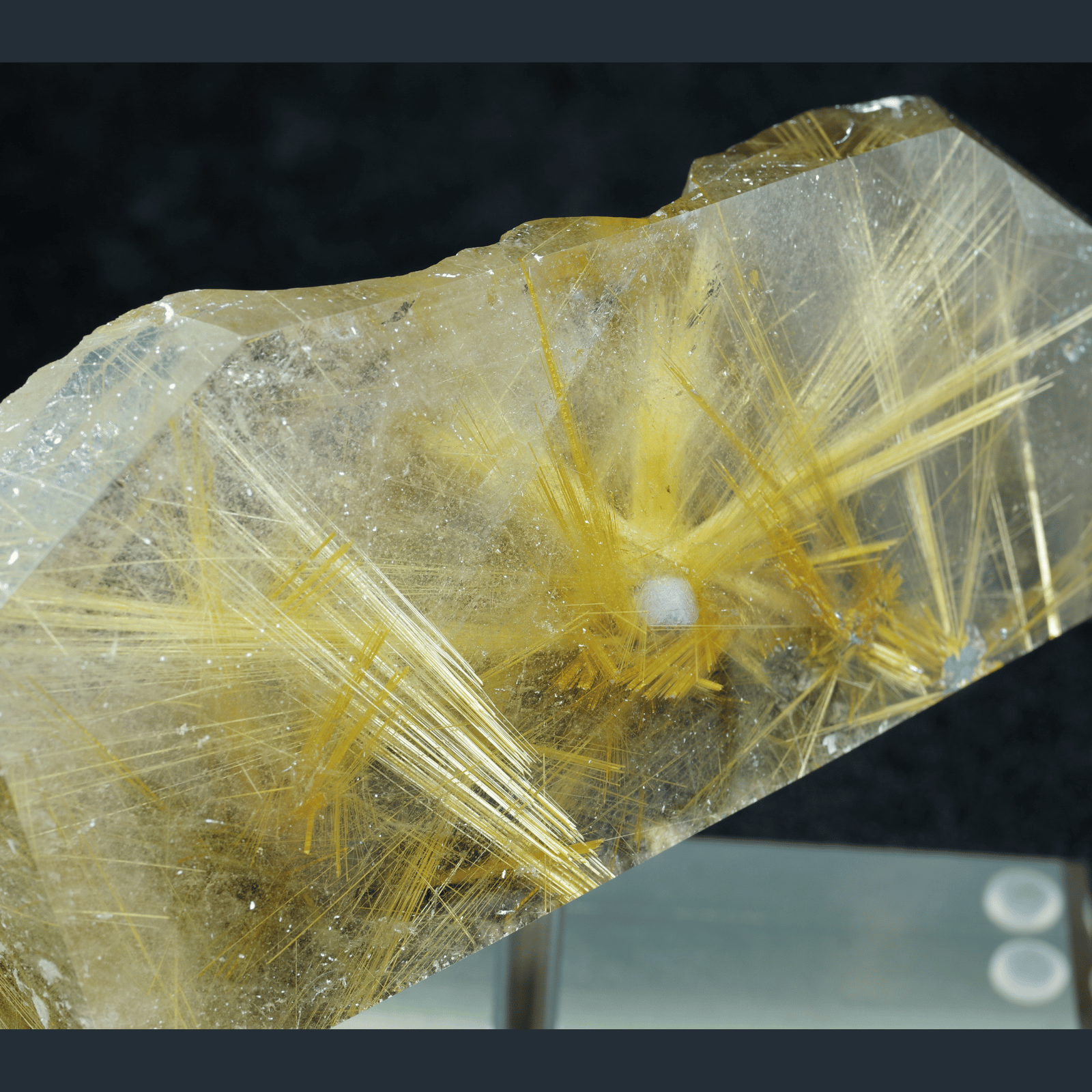 金色の針が眩しいほど輝いていて、力強く放射状にまっすぐ伸びていることは太陽放射ルチルクォーツの中でも珍しいです!