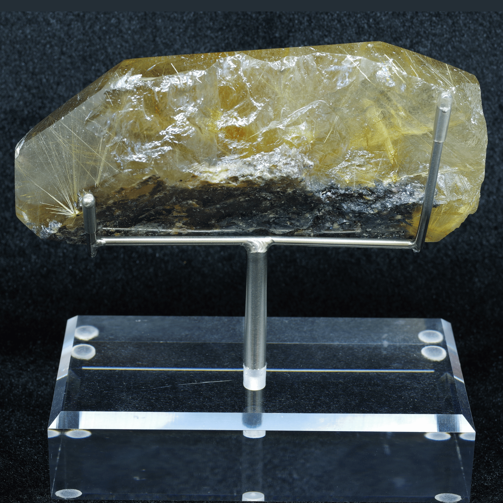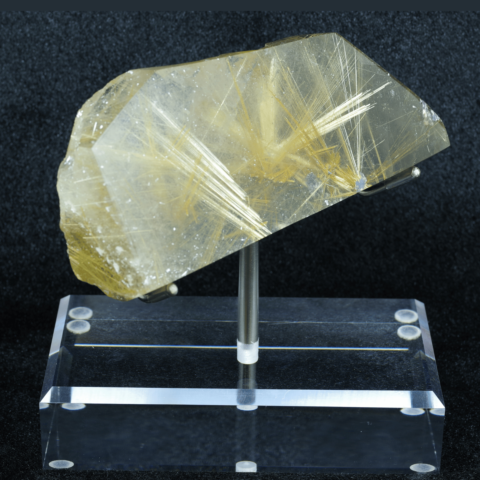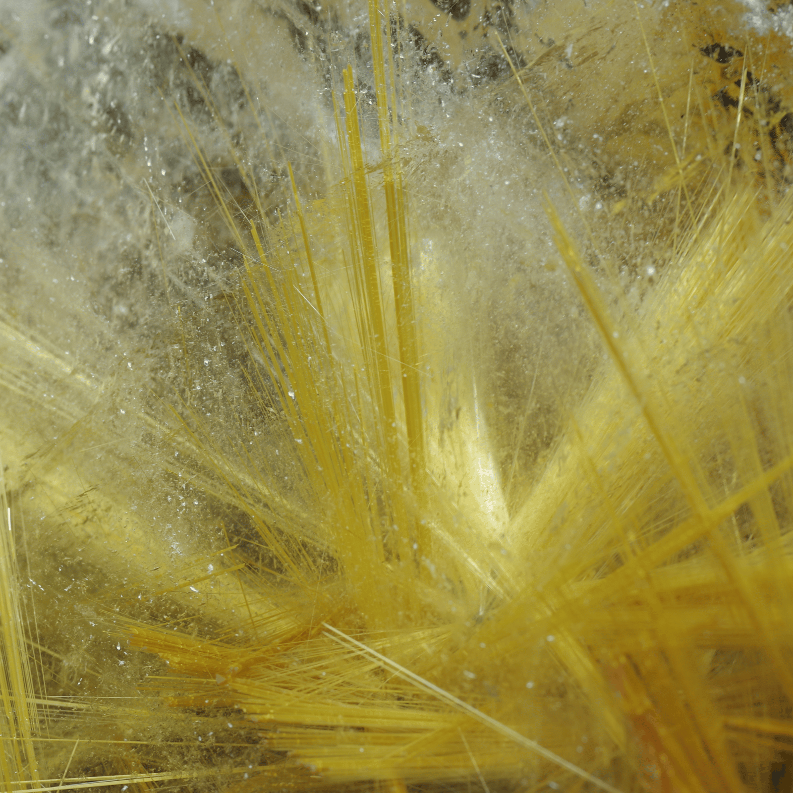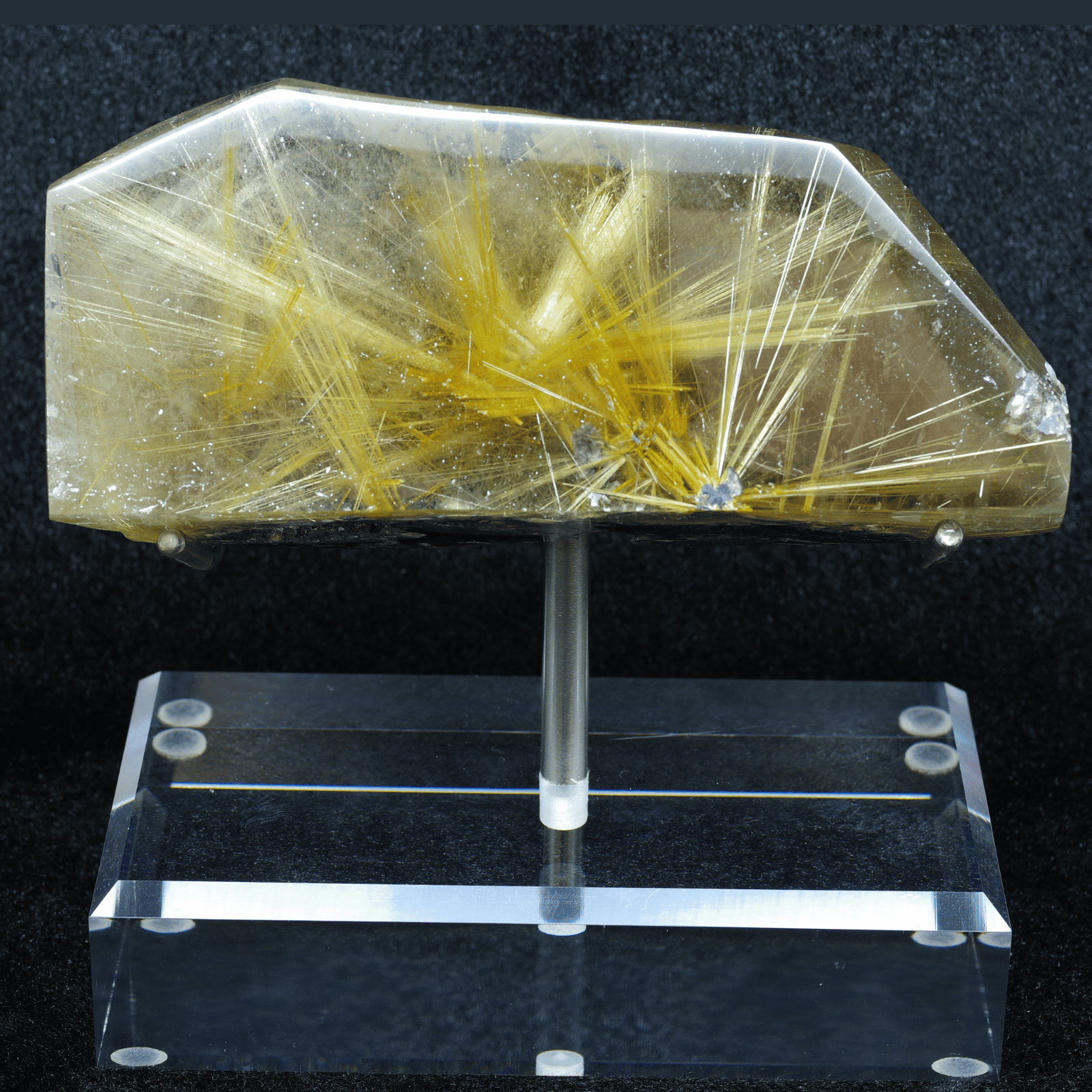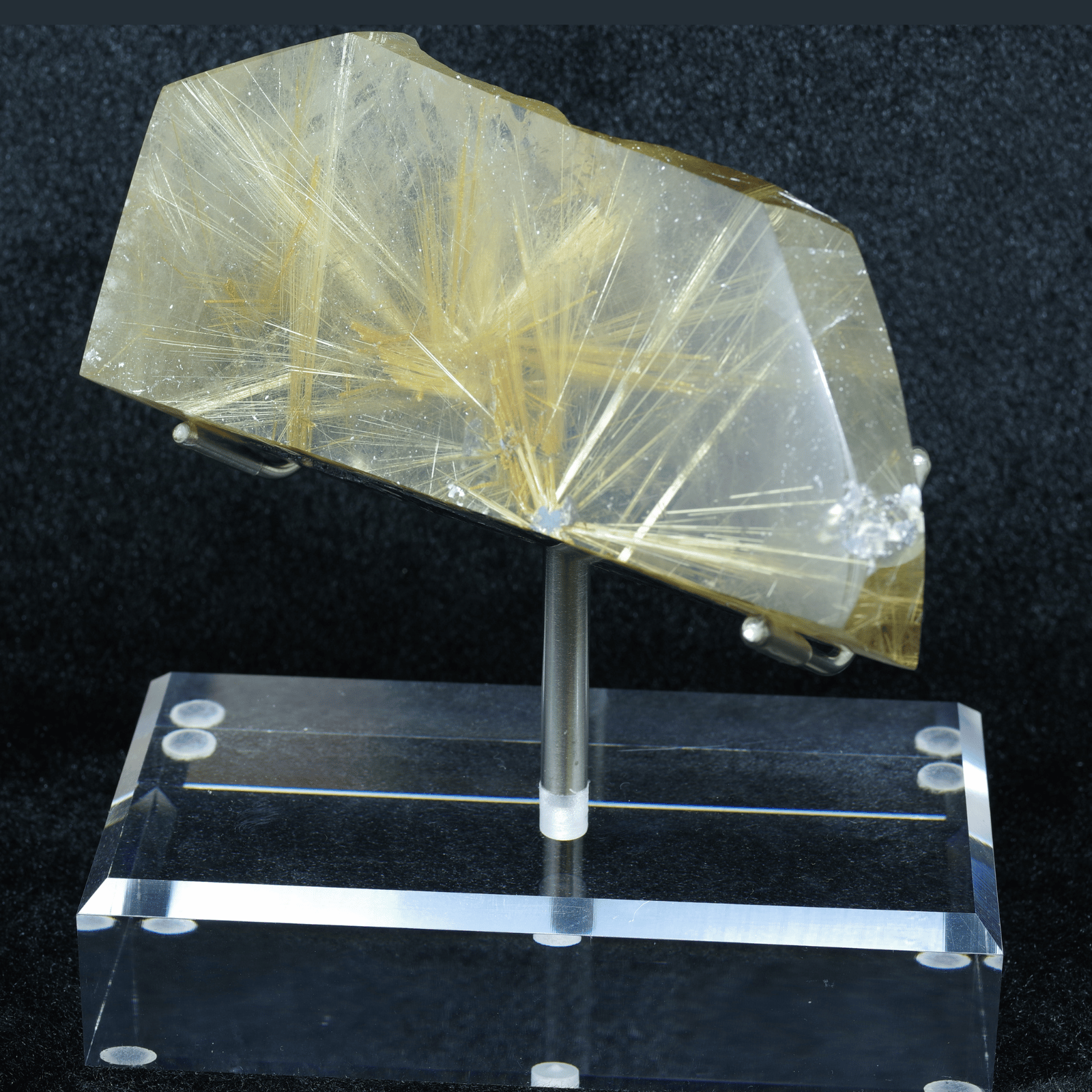 金色の針が眩しいほど輝いていて、力強く放射状にまっすぐ伸びていることは太陽放射ルチルクォーツの中でも珍しいです!