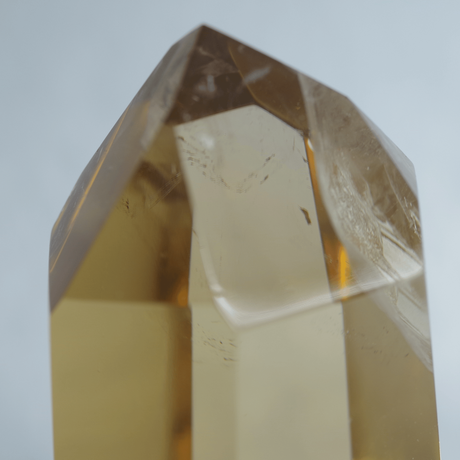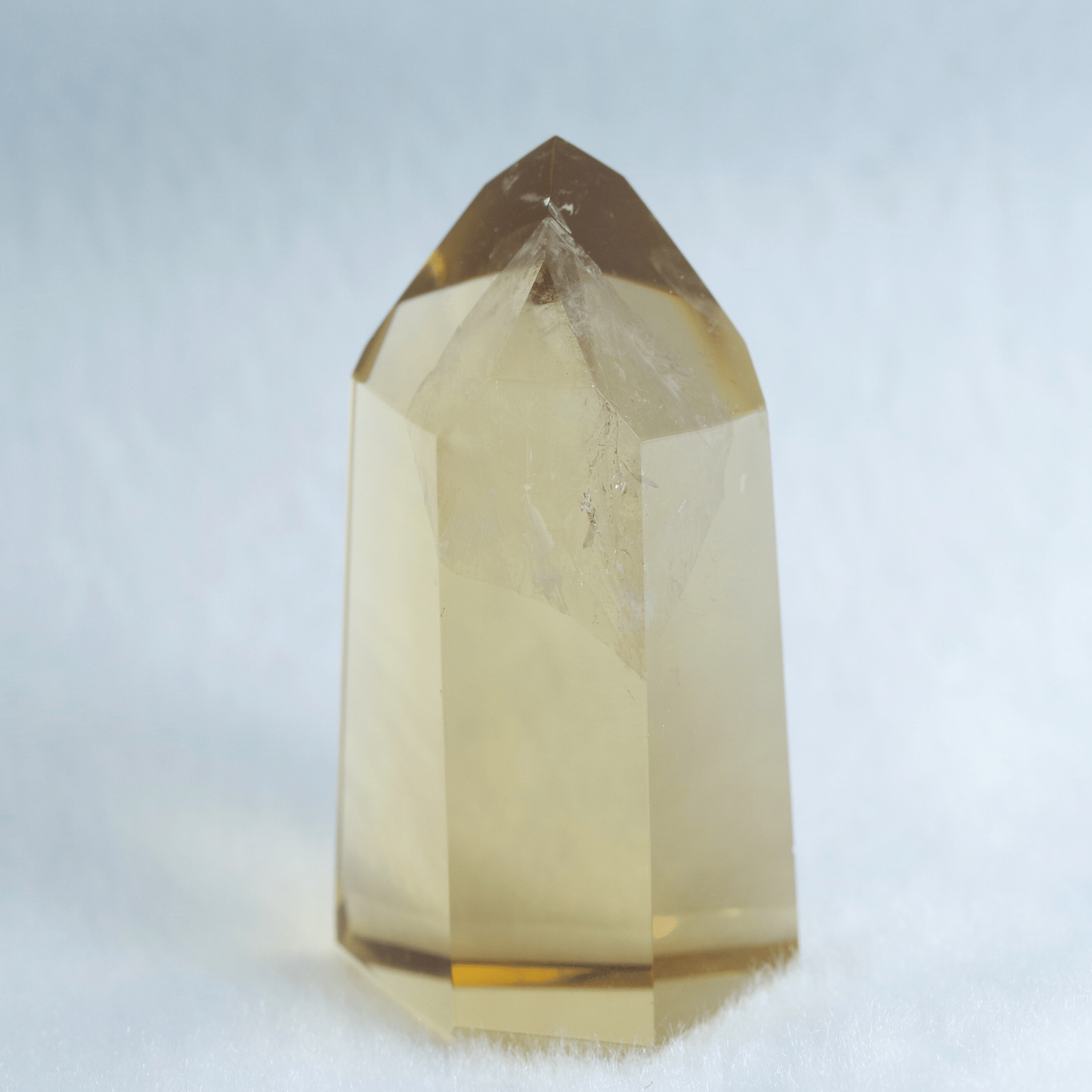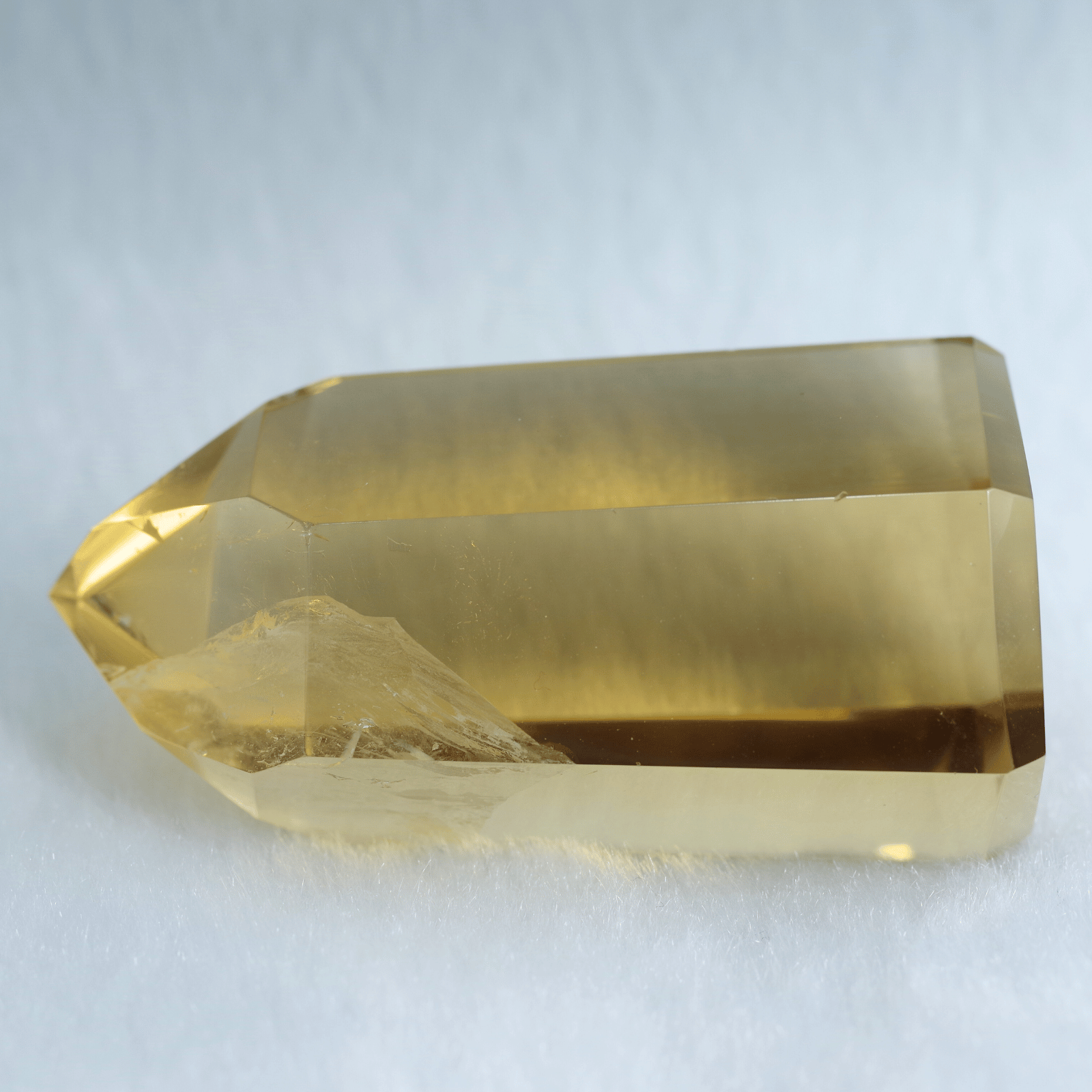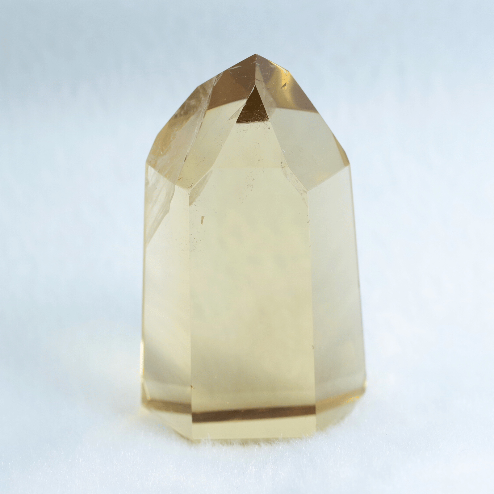 透明度の高さを生かしてポリッシュした結晶に光が差し込むと、じんわりと繁栄が広がるような温かなエネルギーを奏でます。