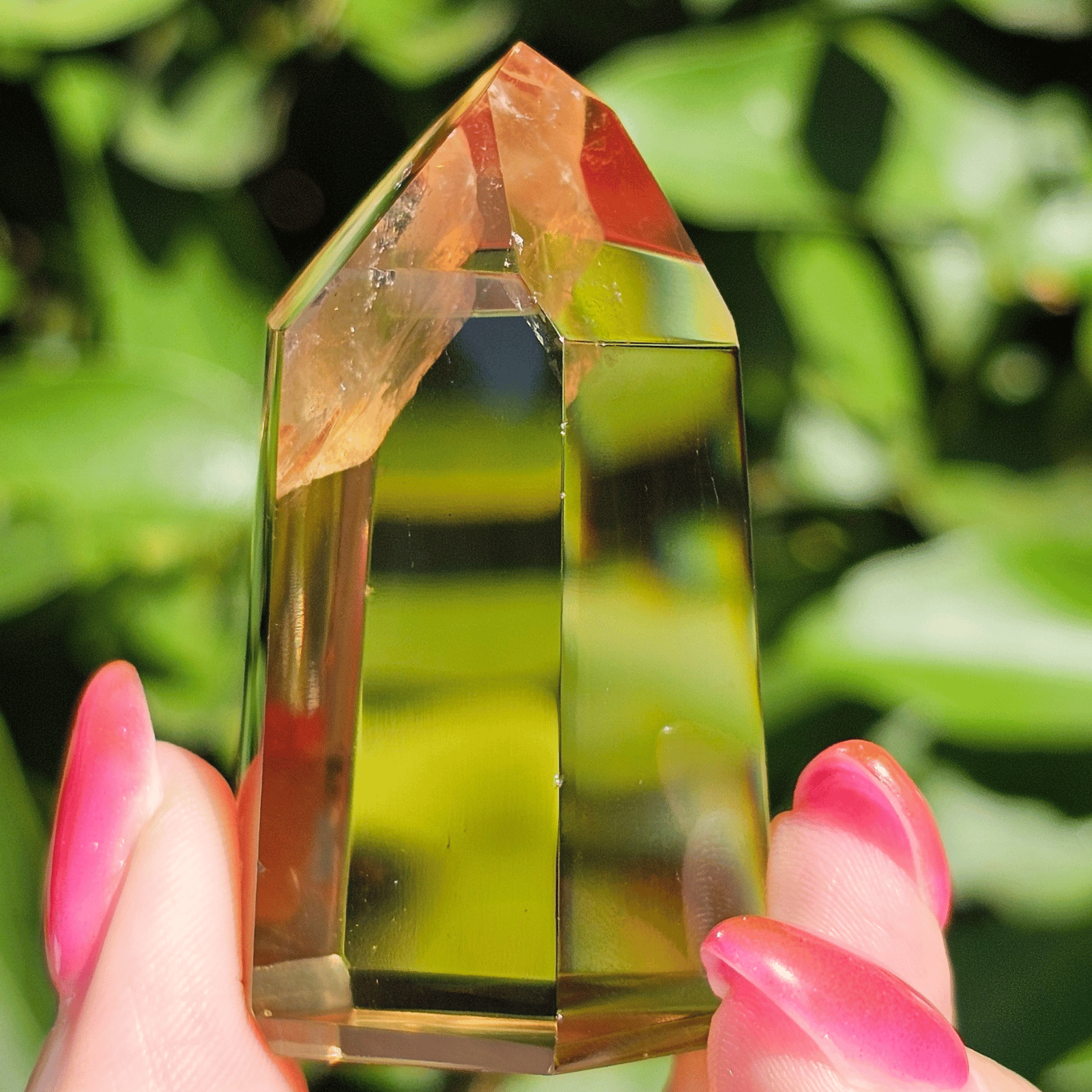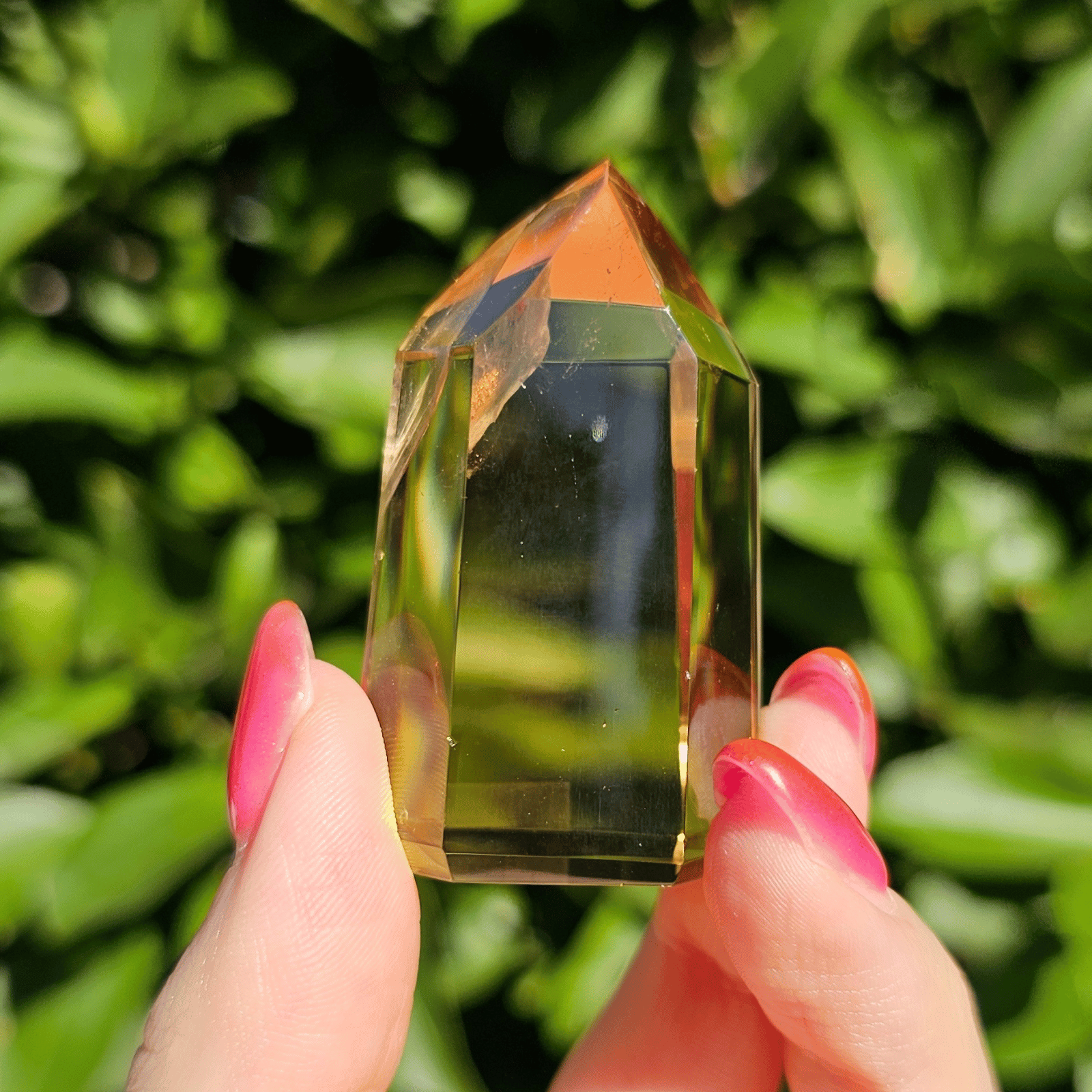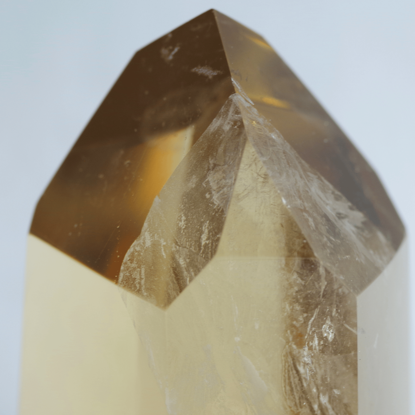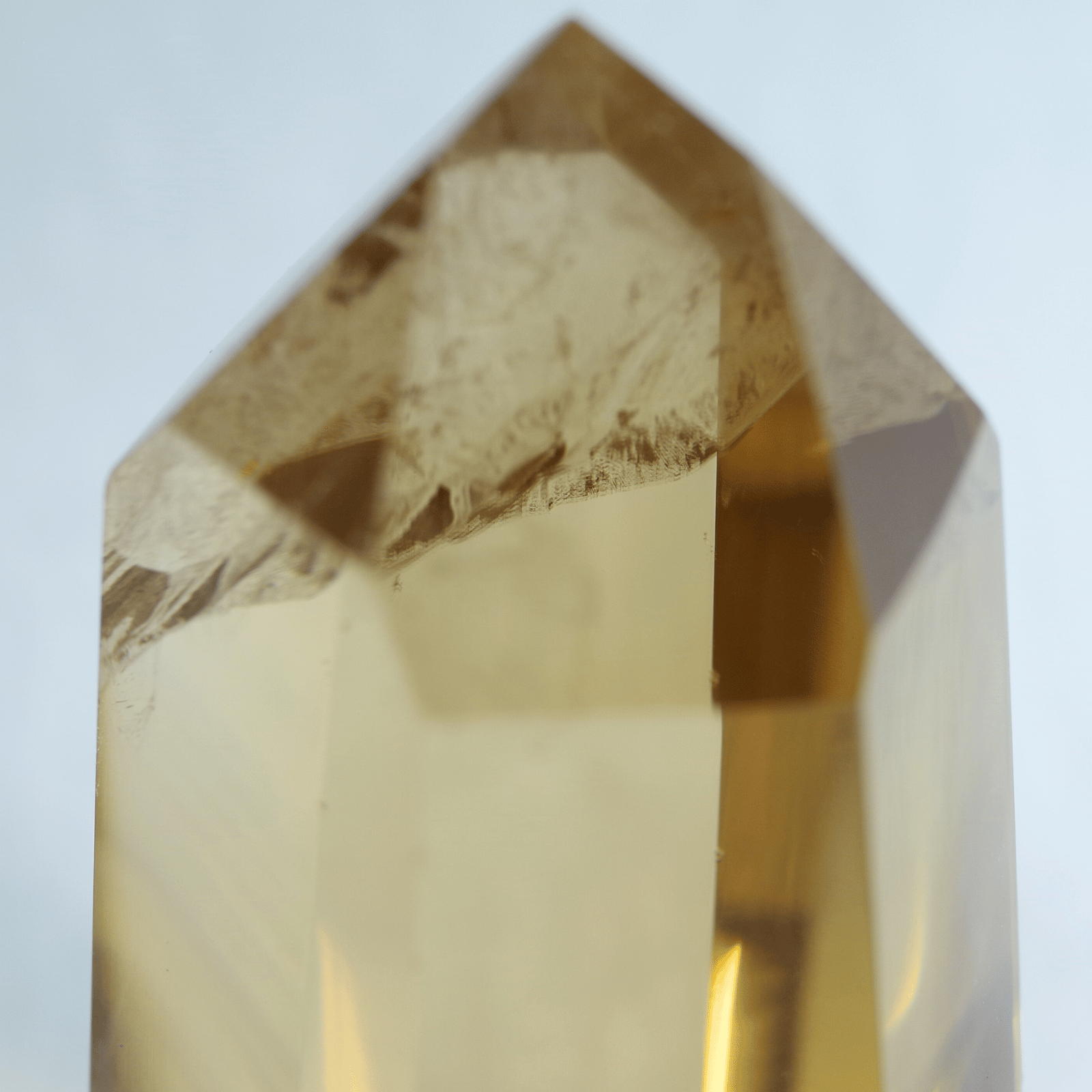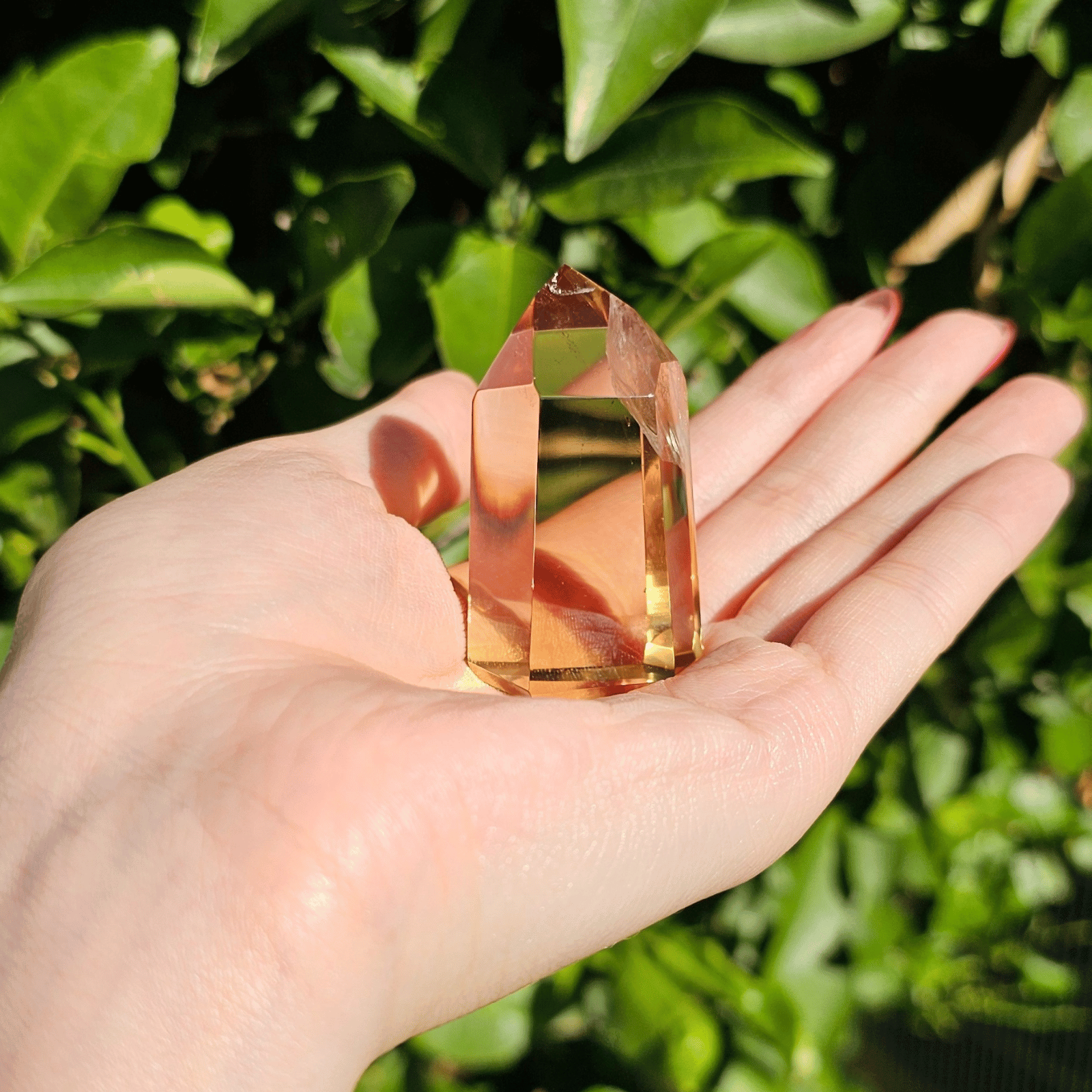 透明度の高さを生かしてポリッシュした結晶に光が差し込むと、じんわりと繁栄が広がるような温かなエネルギーを奏でます。