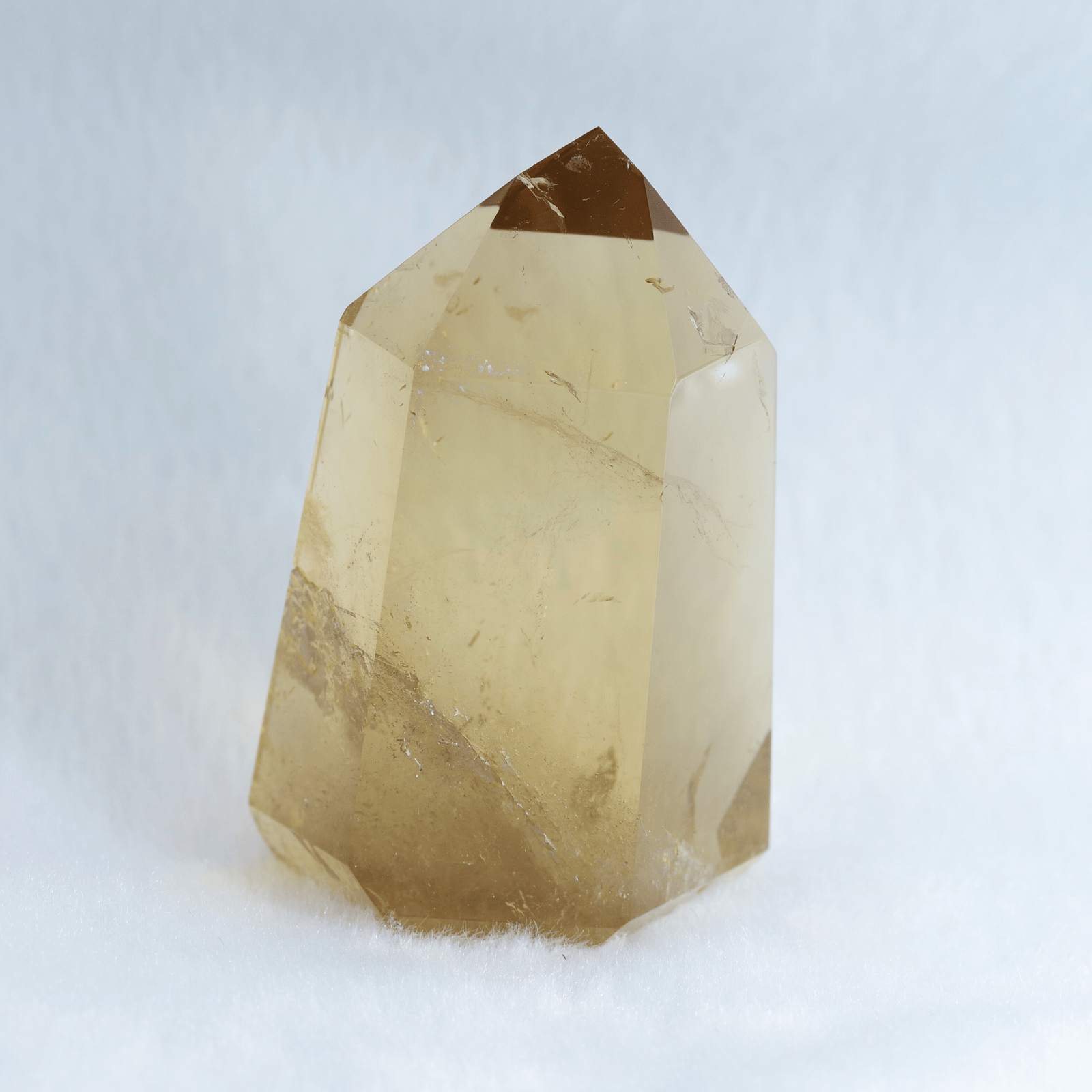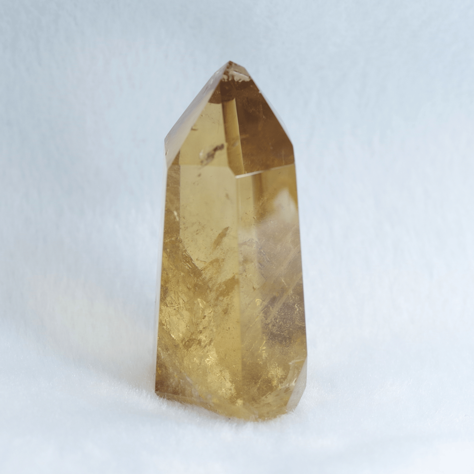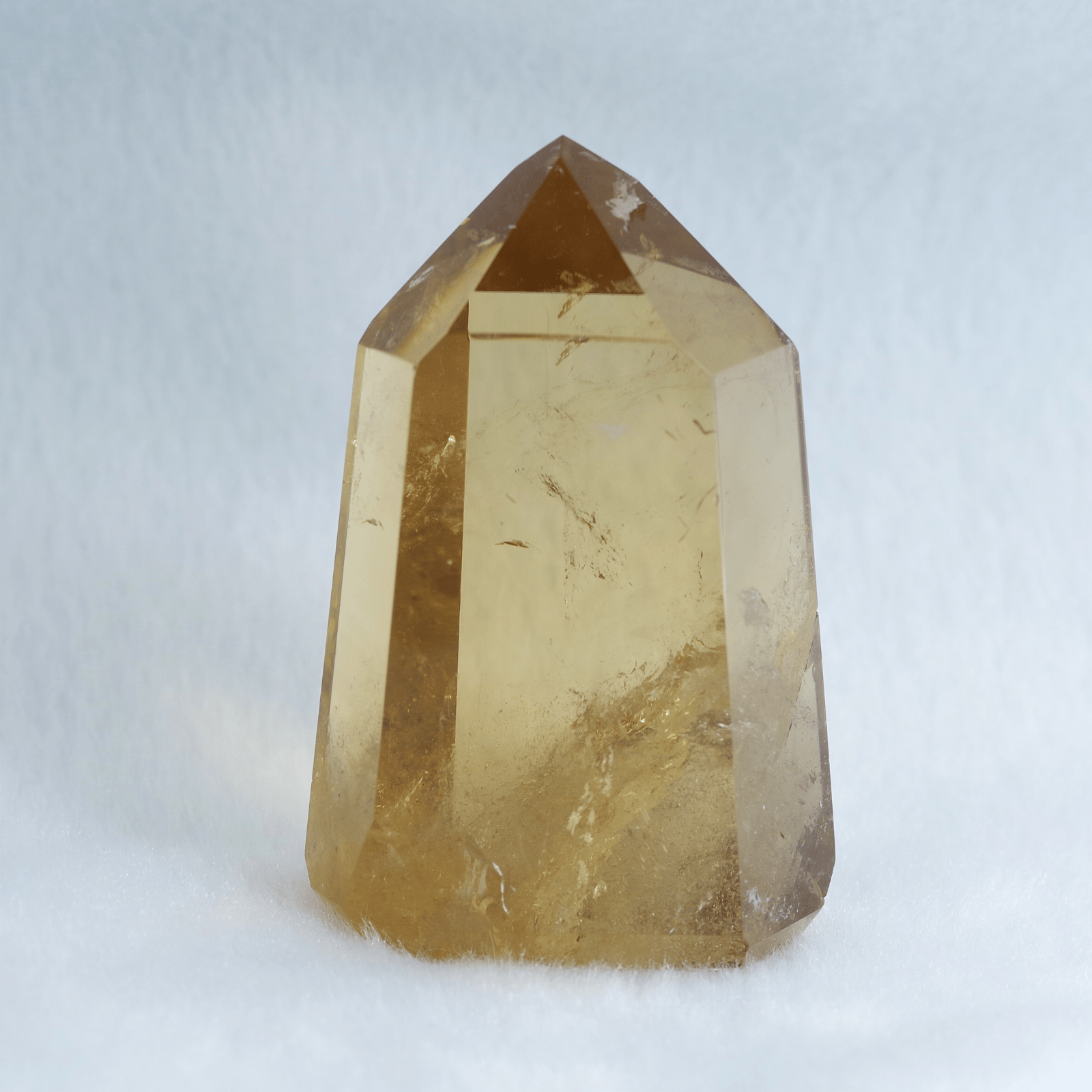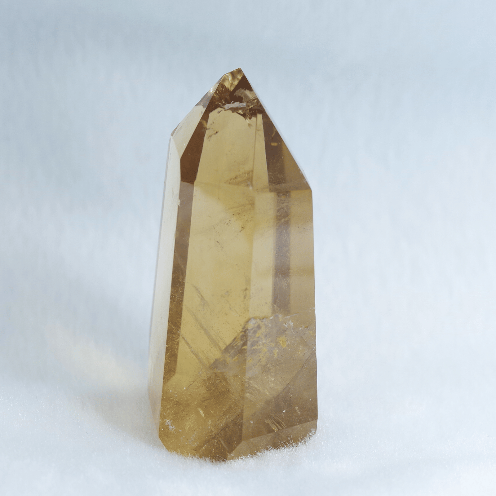透明度の高さを生かしてポリッシュした結晶に光が差し込むと、じんわりと繁栄が広がるような温かなエネルギーを奏でます。