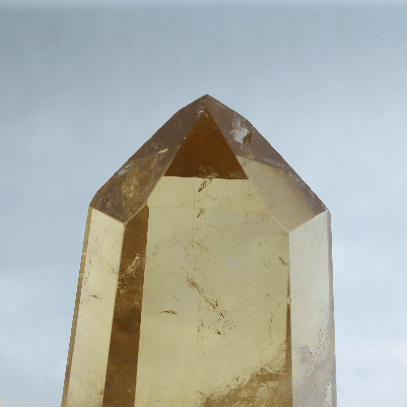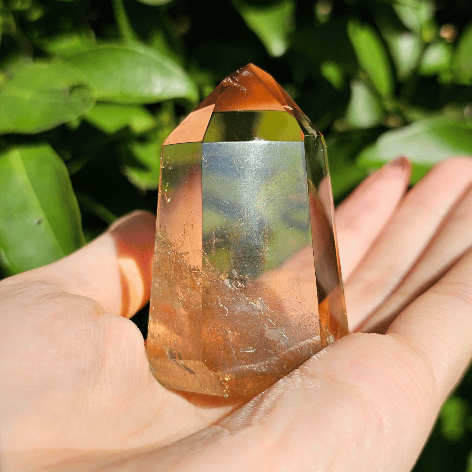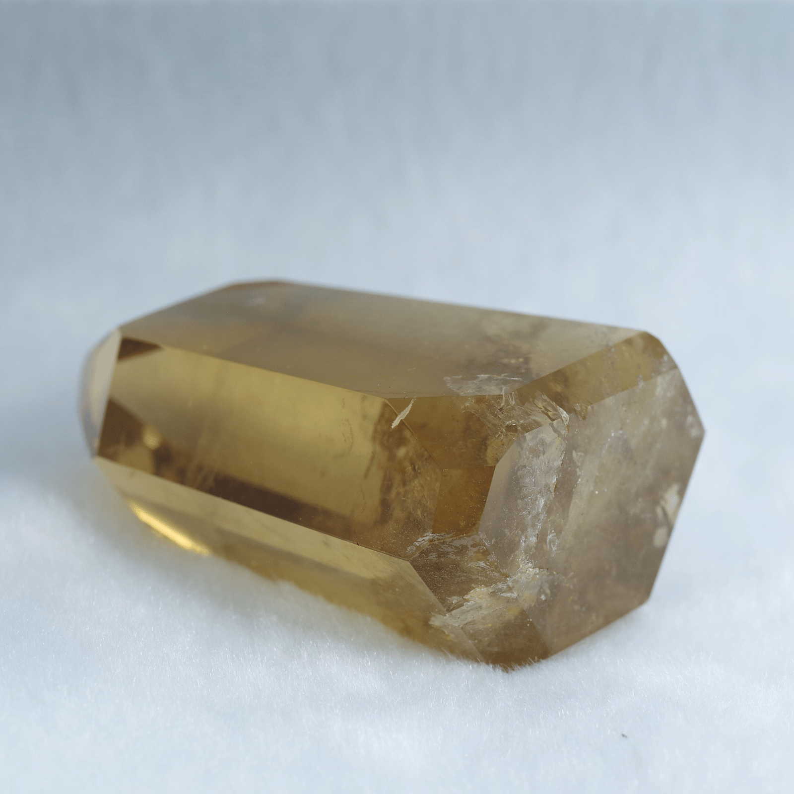 透明度の高さを生かしてポリッシュした結晶に光が差し込むと、じんわりと繁栄が広がるような温かなエネルギーを奏でます。