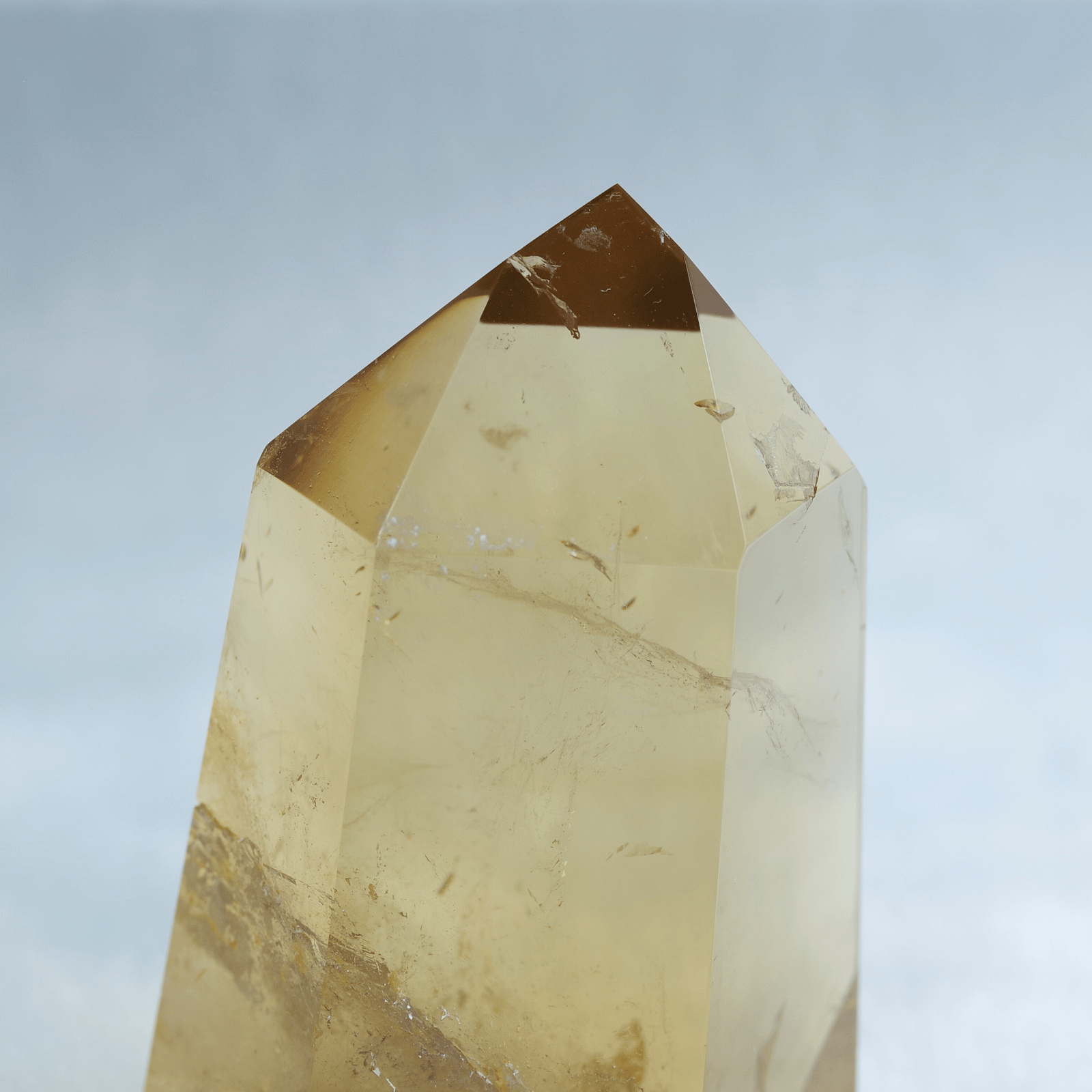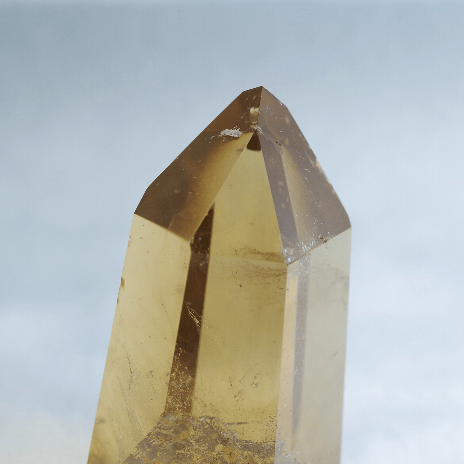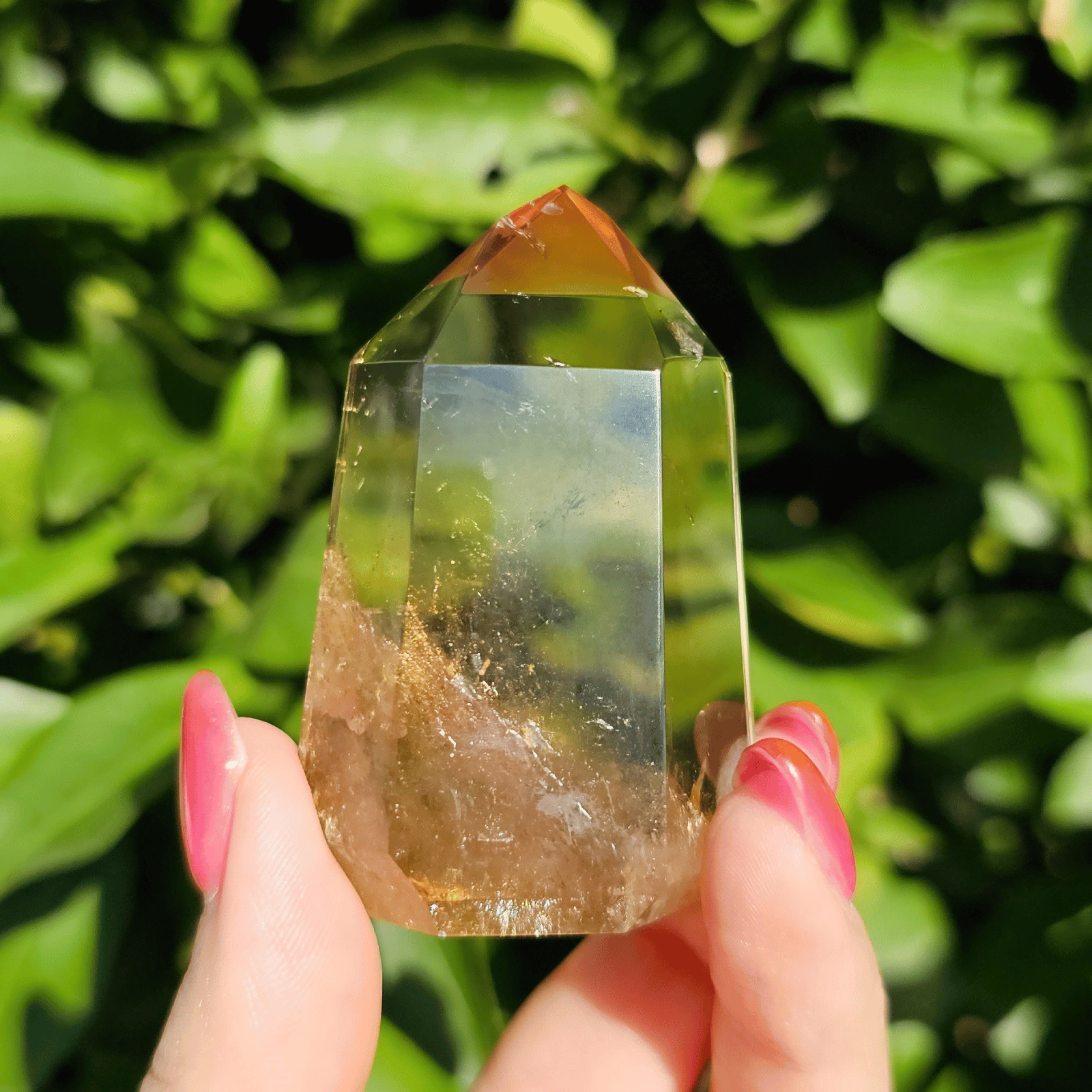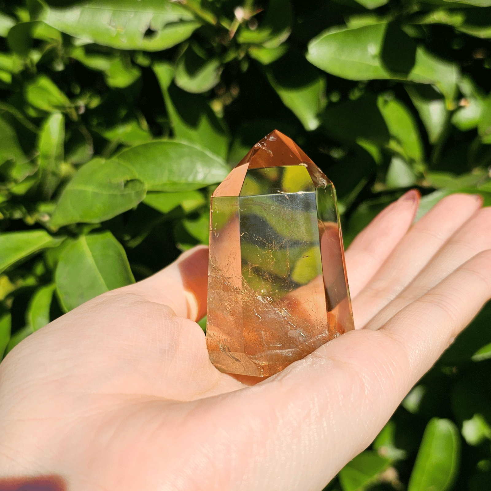 透明度の高さを生かしてポリッシュした結晶に光が差し込むと、じんわりと繁栄が広がるような温かなエネルギーを奏でます。
