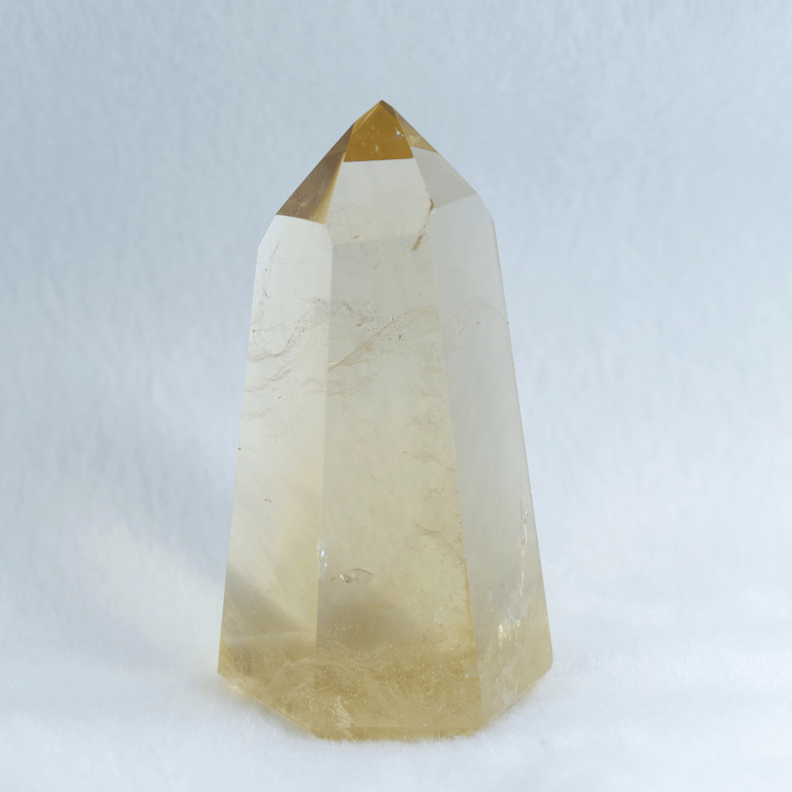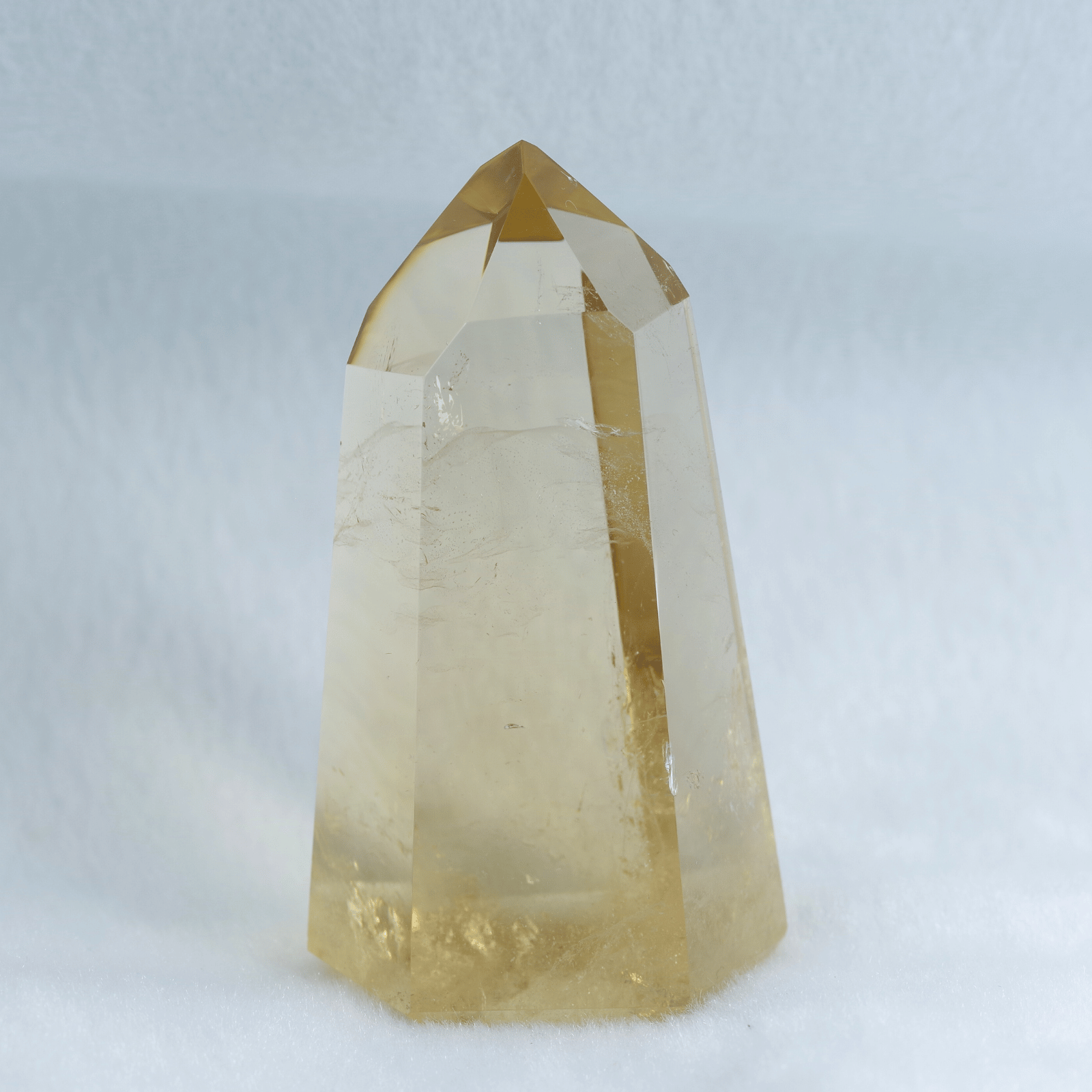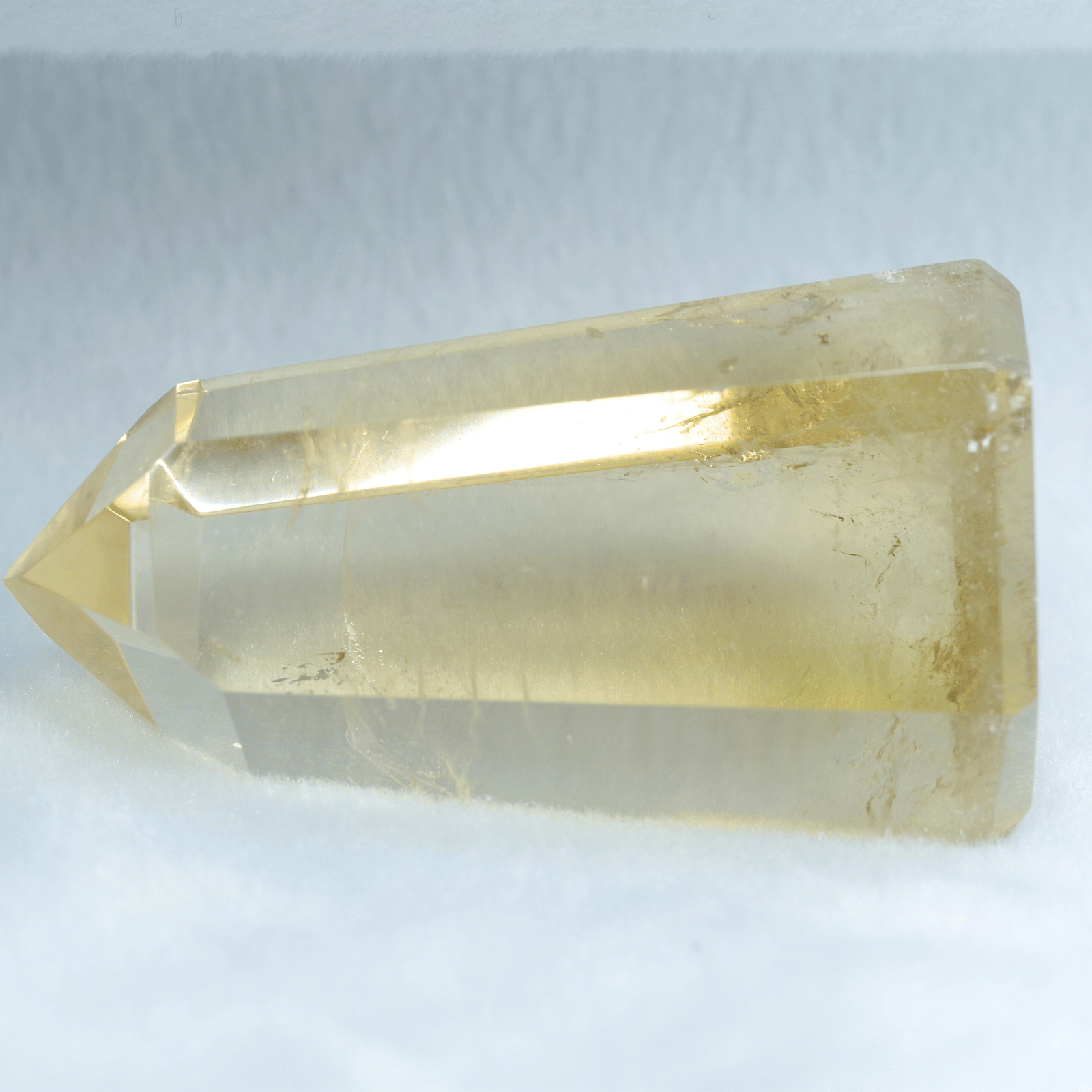 透明度の高さを生かしてポリッシュした結晶に光が差し込むと、じんわりと繁栄が広がるような温かなエネルギーを奏でます。