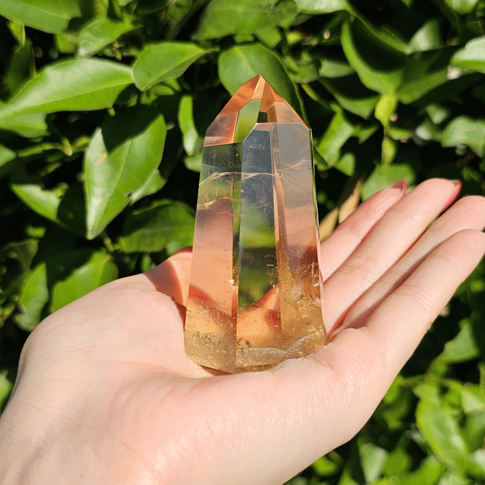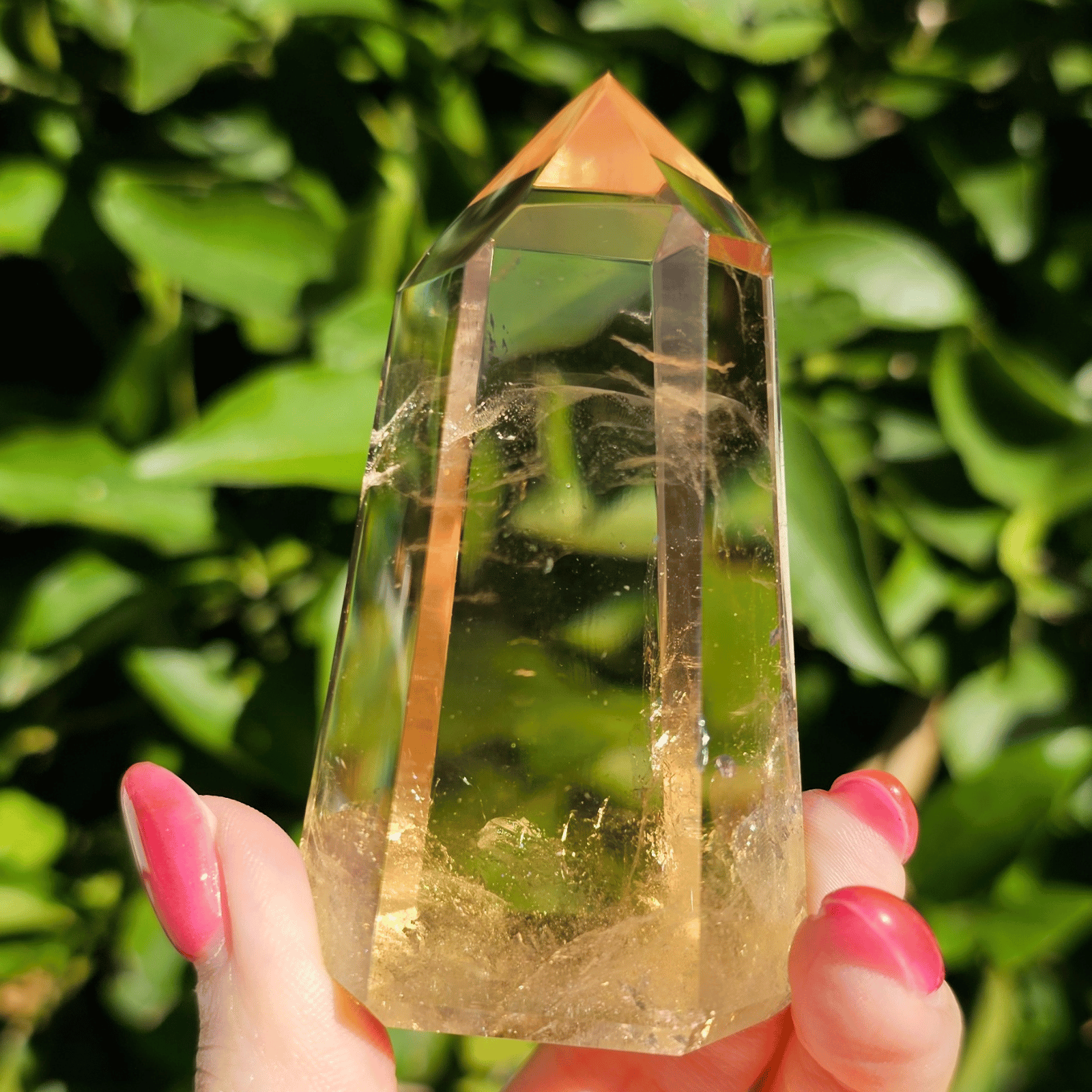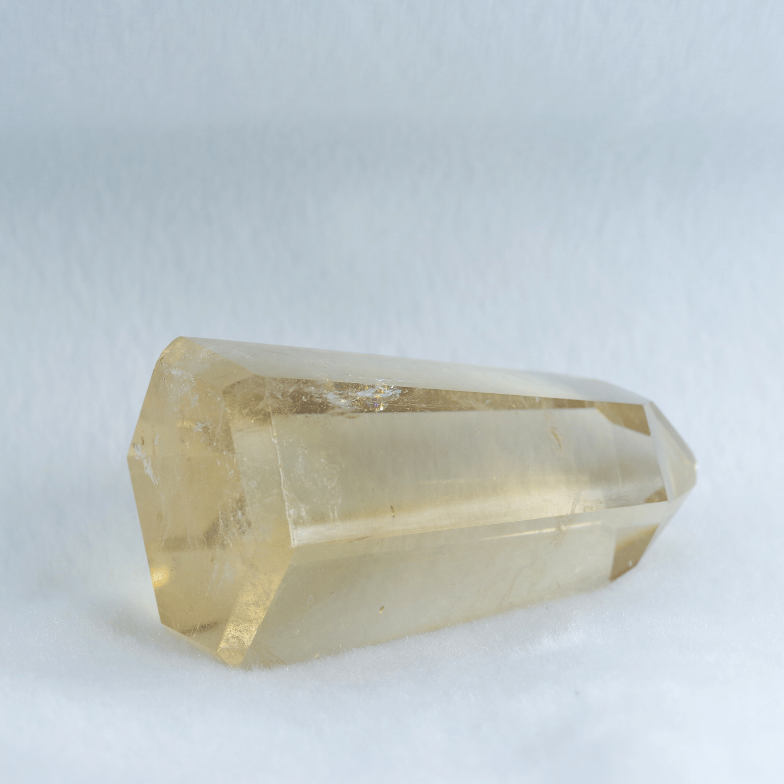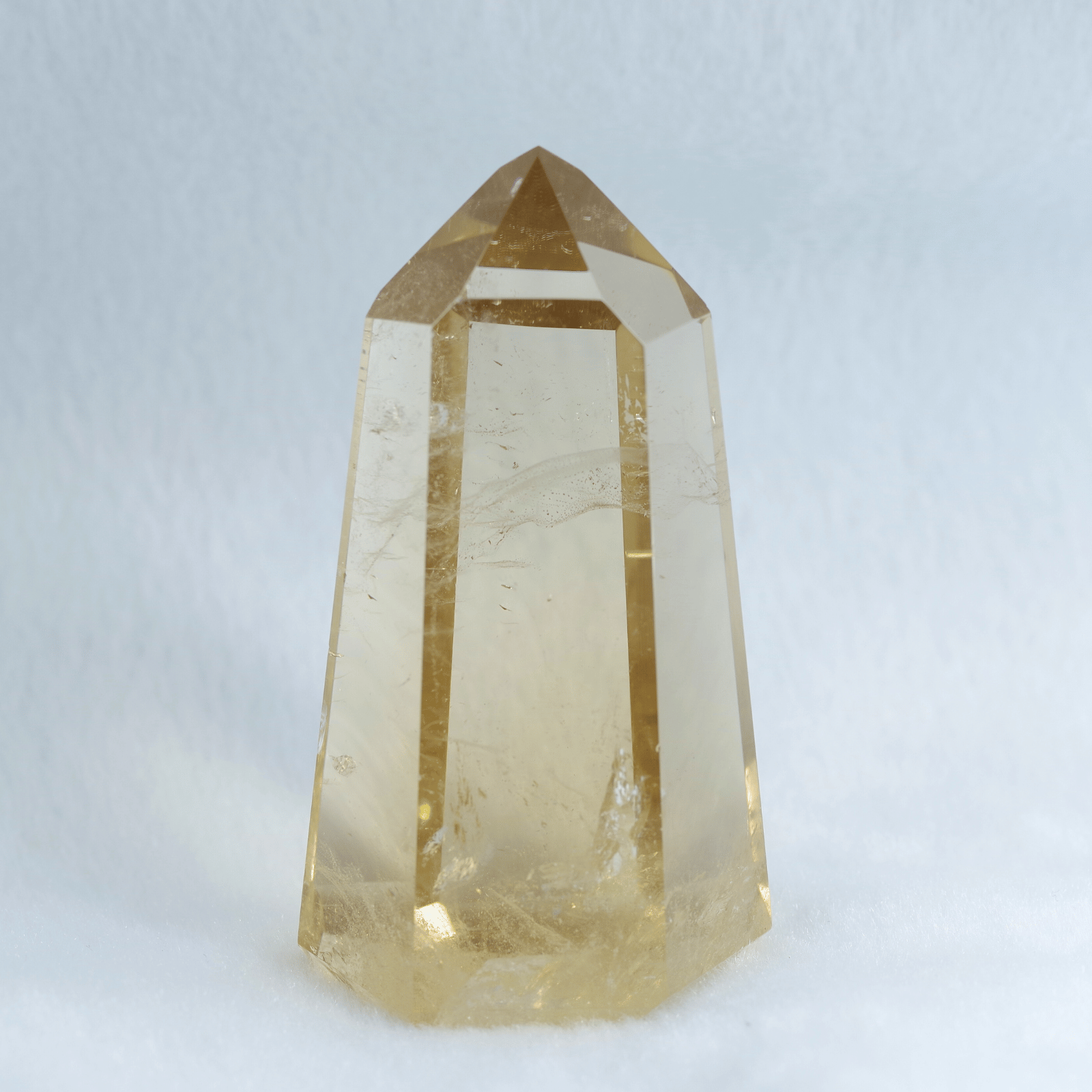 透明度の高さを生かしてポリッシュした結晶に光が差し込むと、じんわりと繁栄が広がるような温かなエネルギーを奏でます。