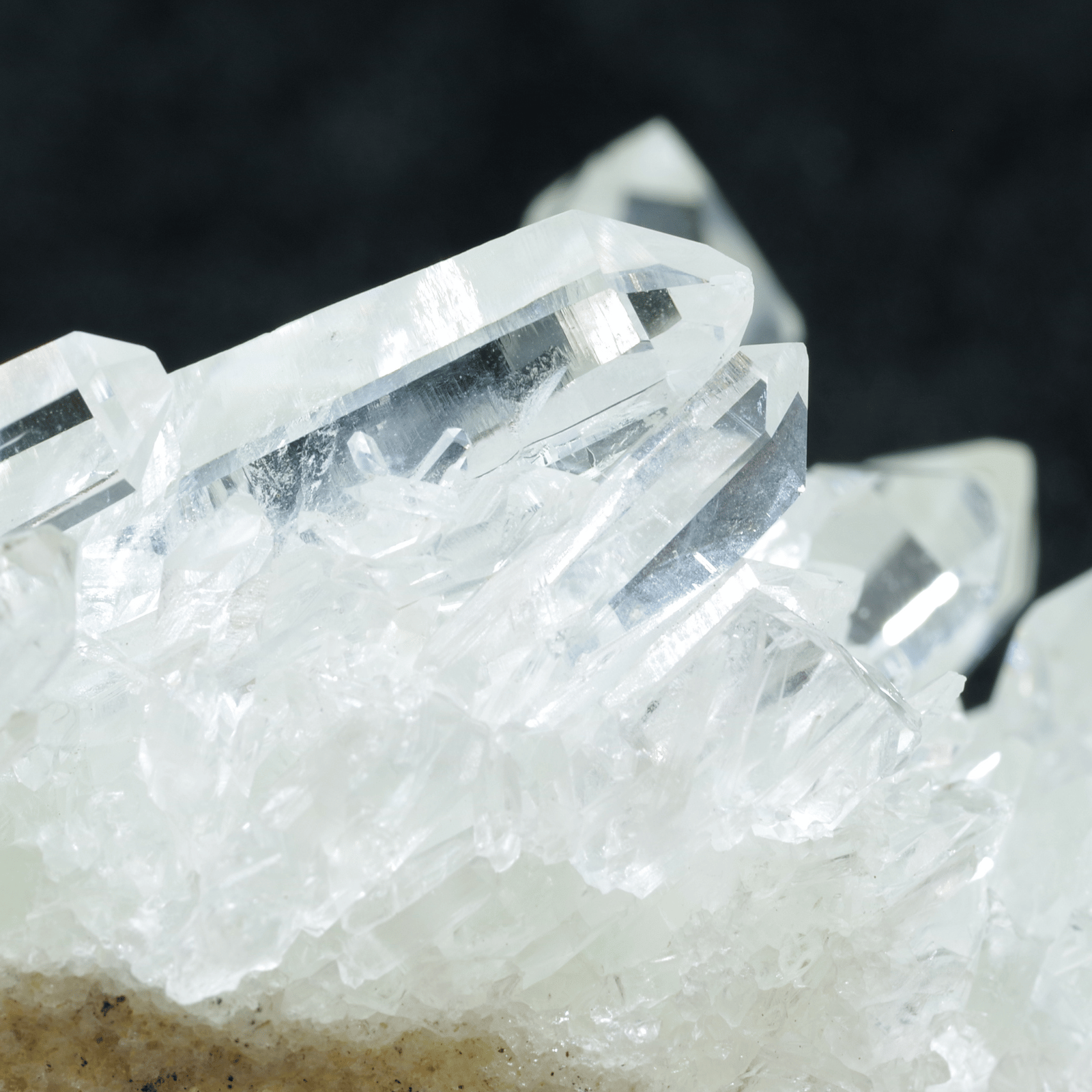 繊細な輝きを放つ透明な結晶たちが育つ良質なクラスター。