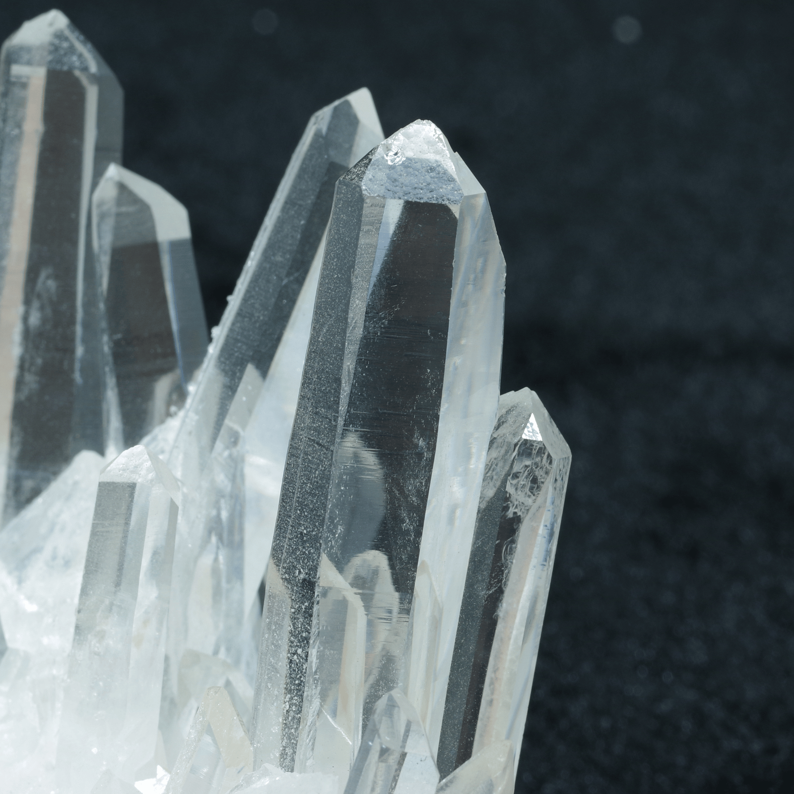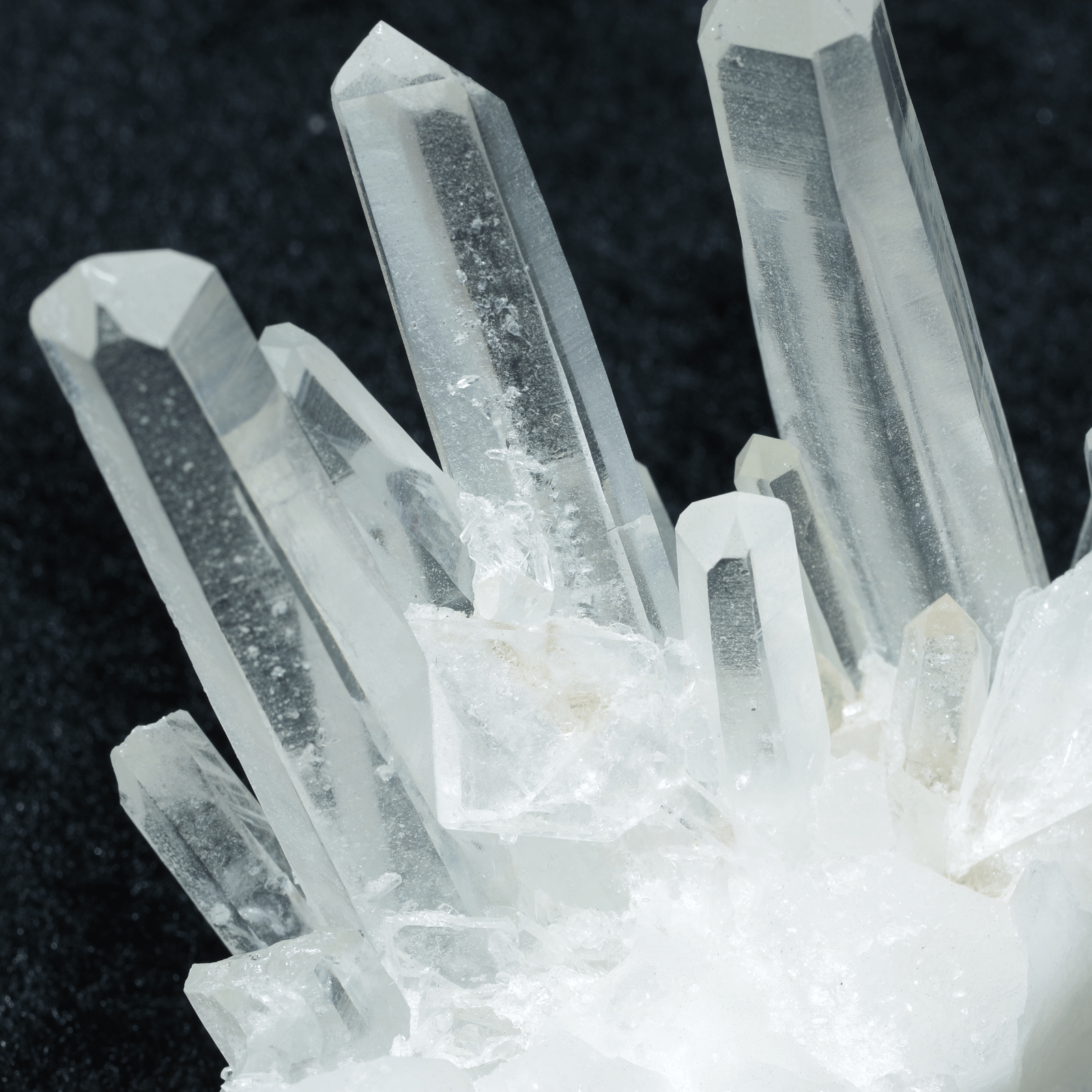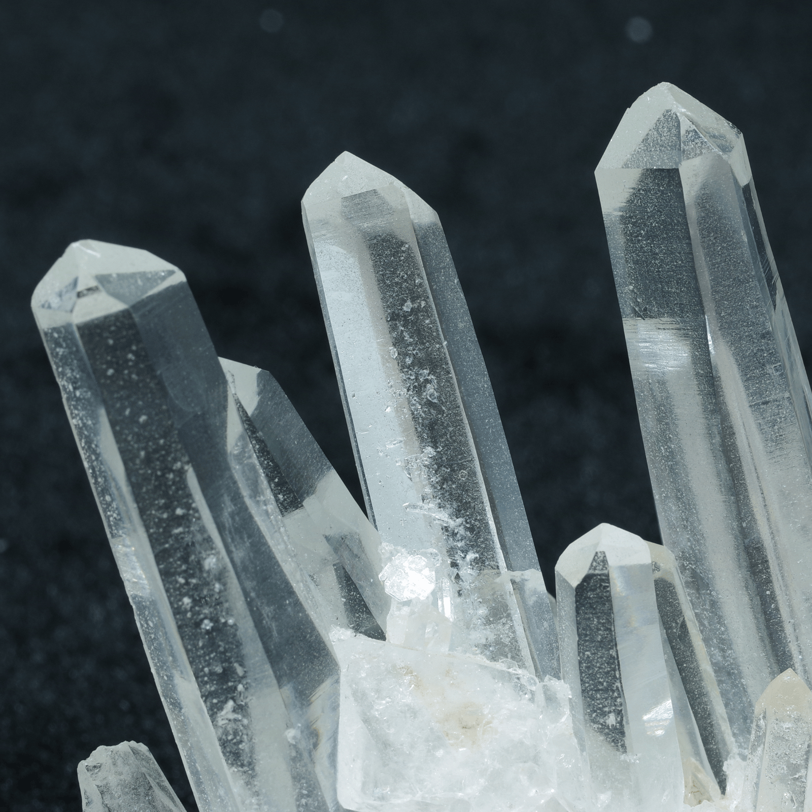 氷柱のように凛とまっすぐ伸びる透明結晶が美しいクラスター。