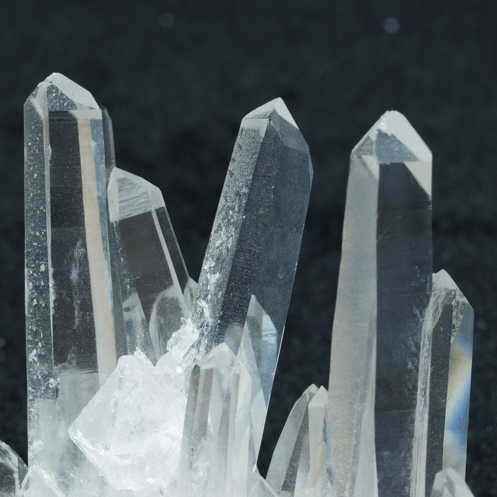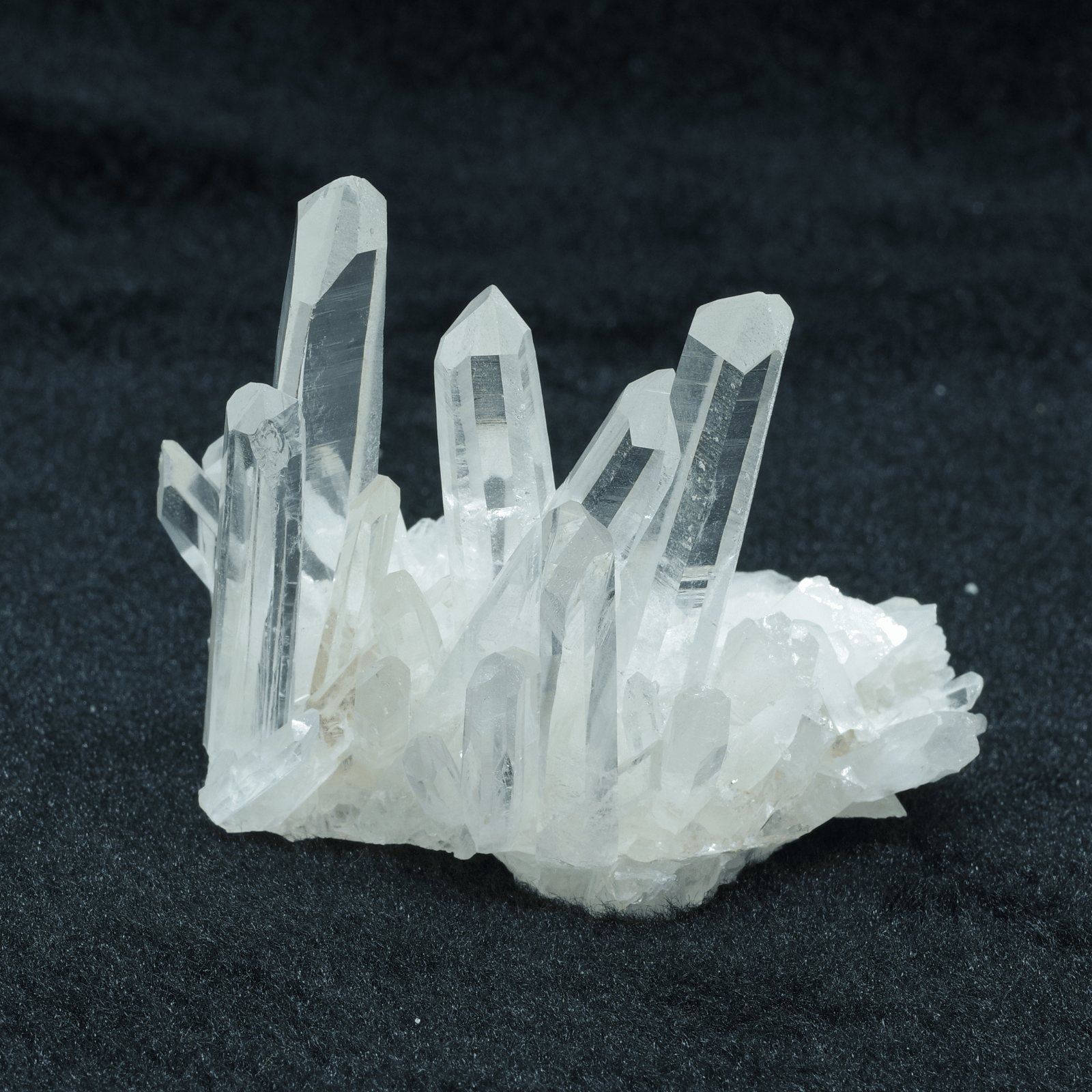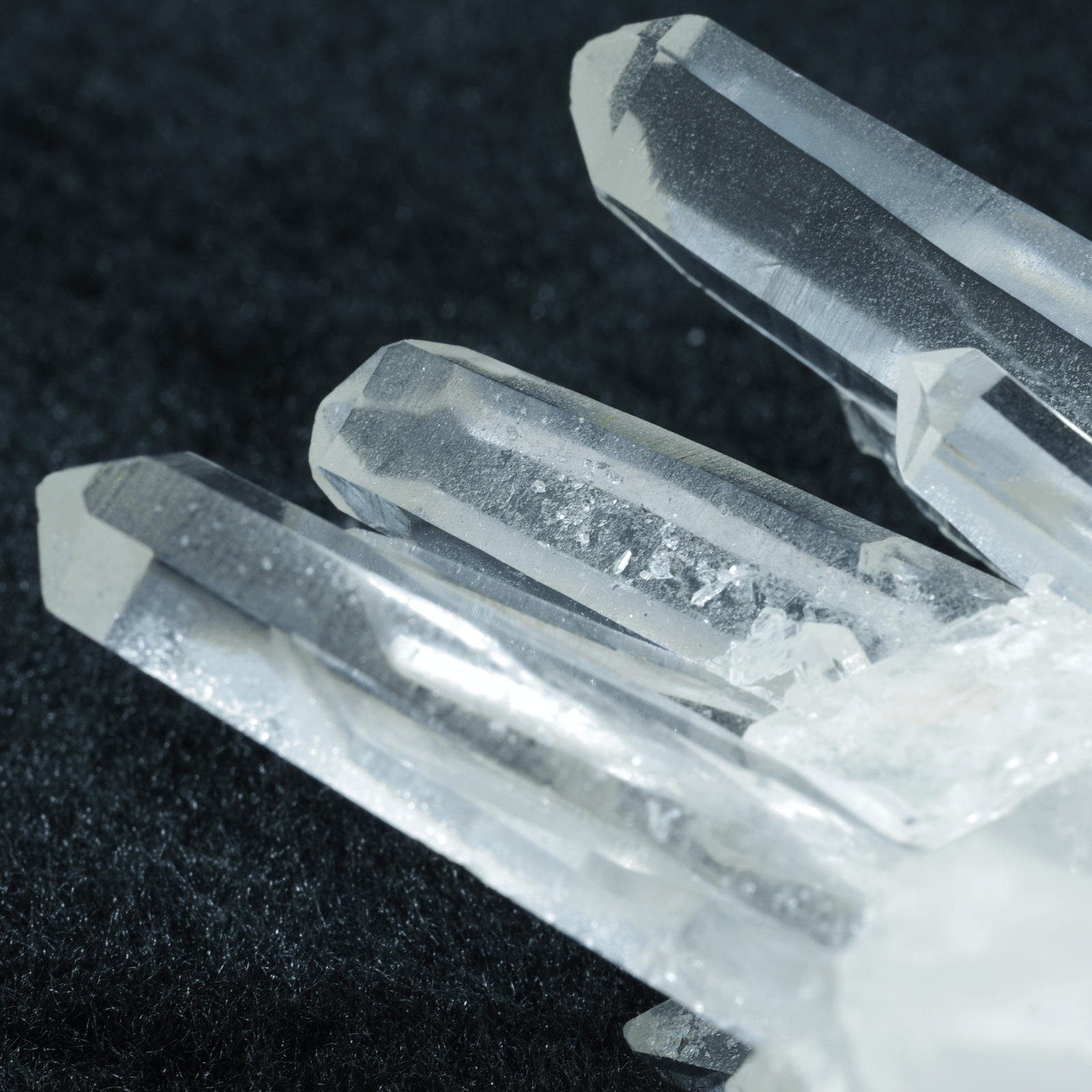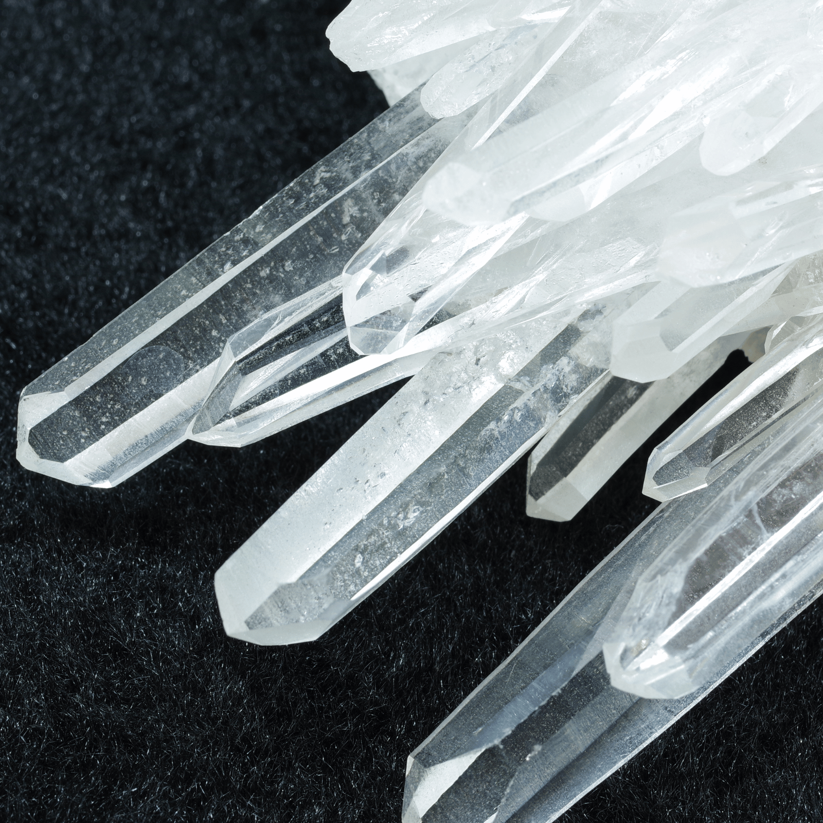 氷柱のように凛とまっすぐ伸びる透明結晶が美しいクラスター。