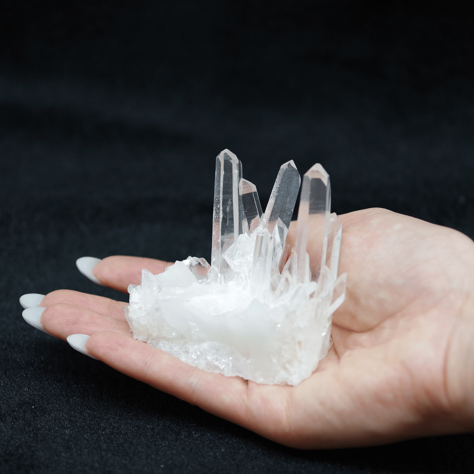 手のひらに収まるほどのサイズながら、結晶ひとつひとつが凛と立ち上がり、堂々とした存在感を放ちます。