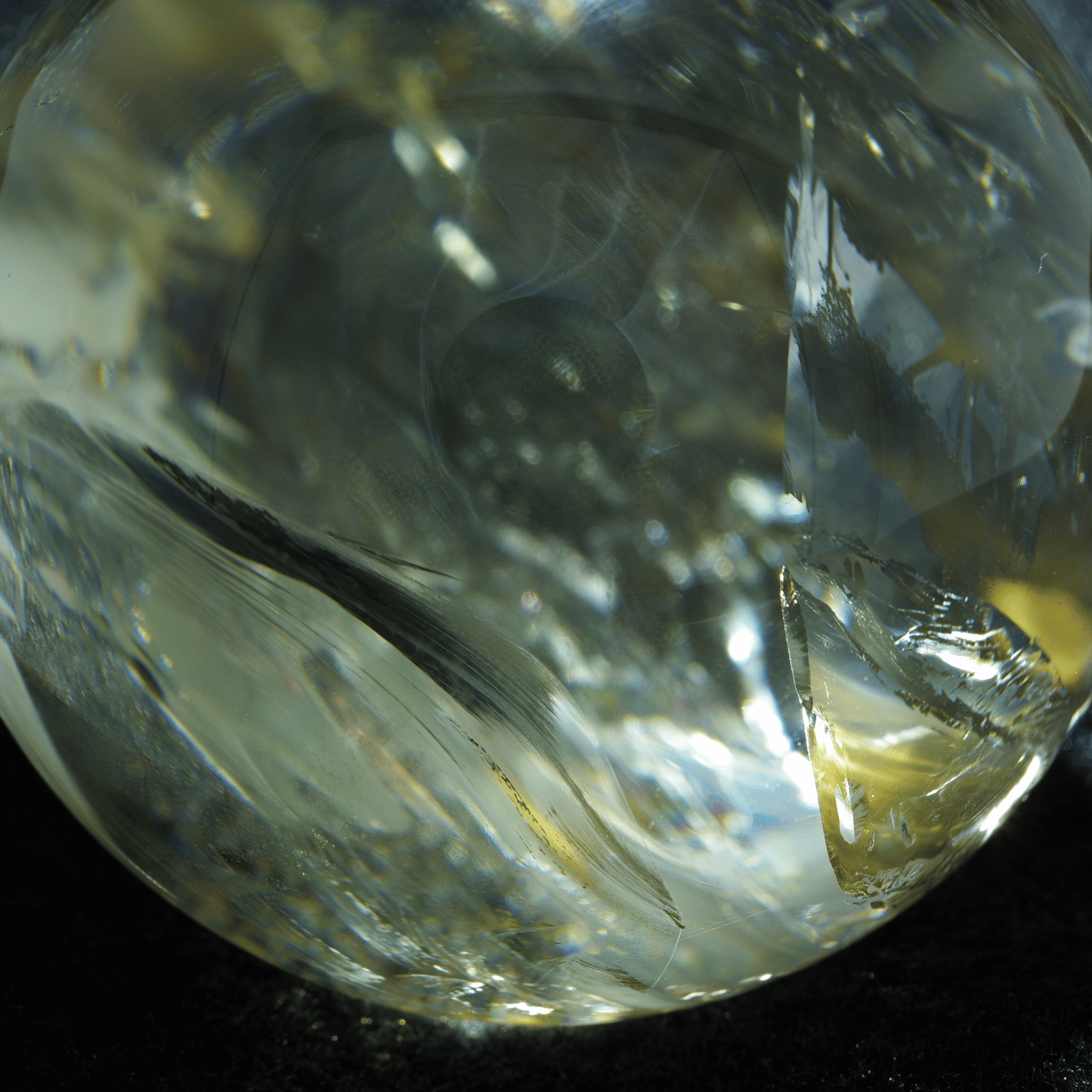 透明感のあるやわらかなレモンイエローに、角度によって美しく浮かび上がる虹。