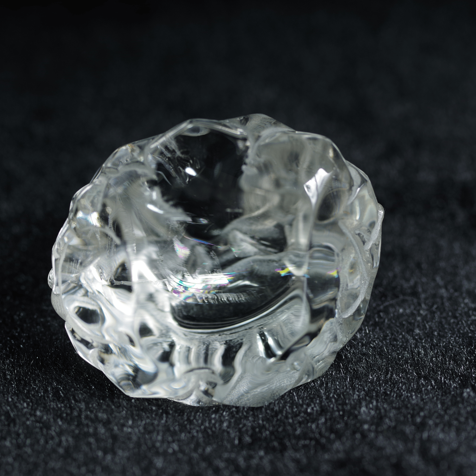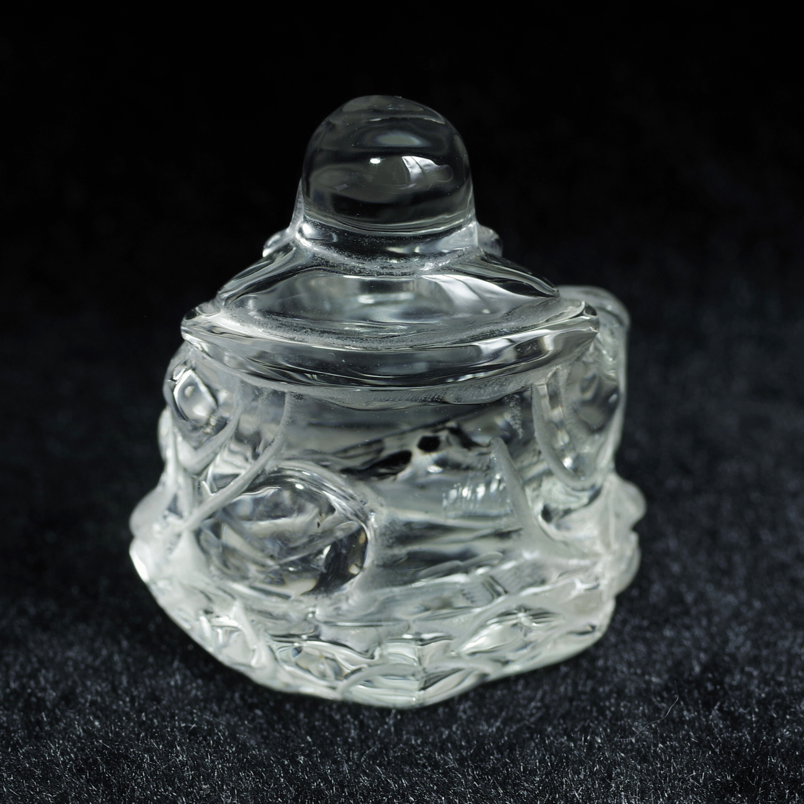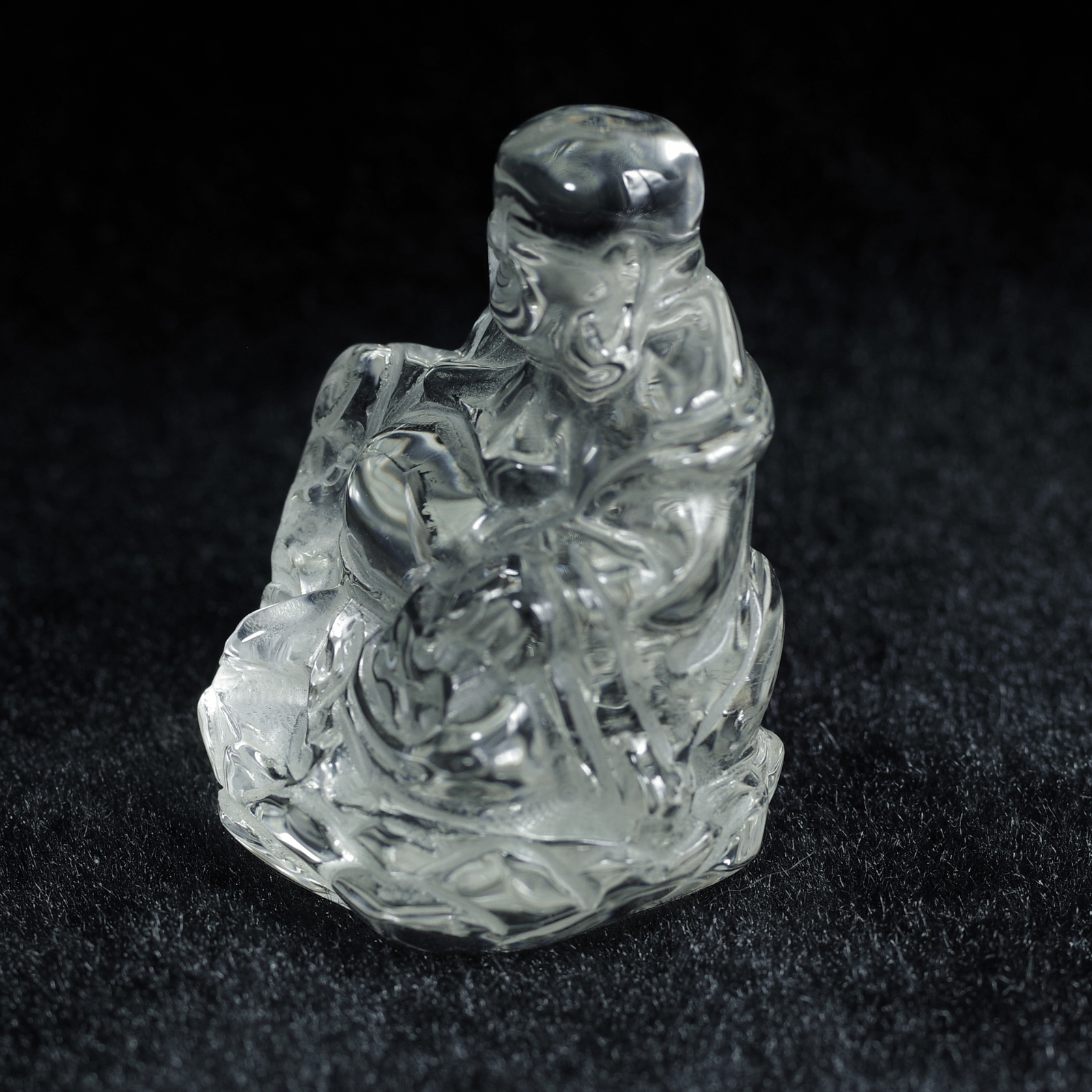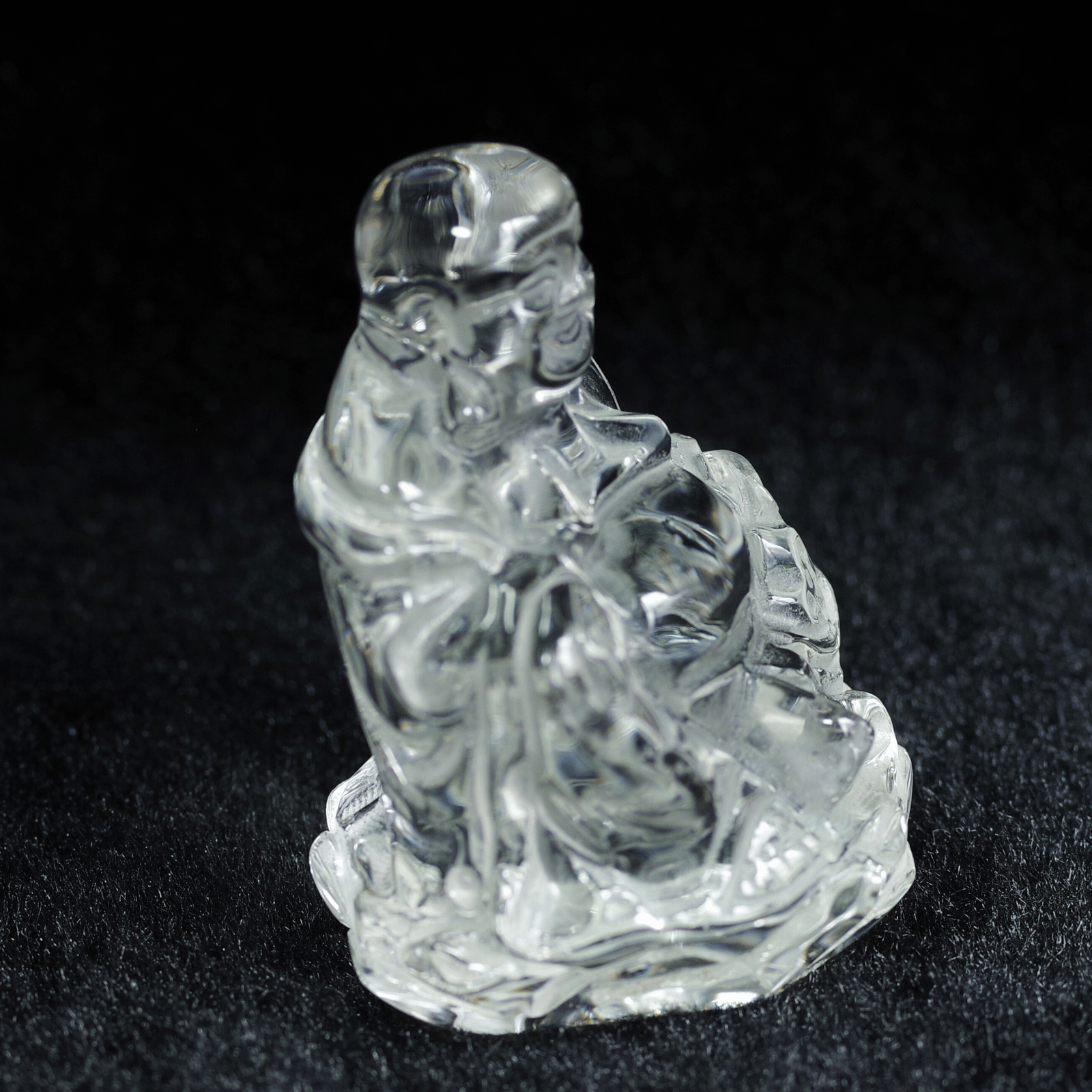 透明度の高い天然水晶から丁寧に彫り上げられた「水晶布袋尊」。