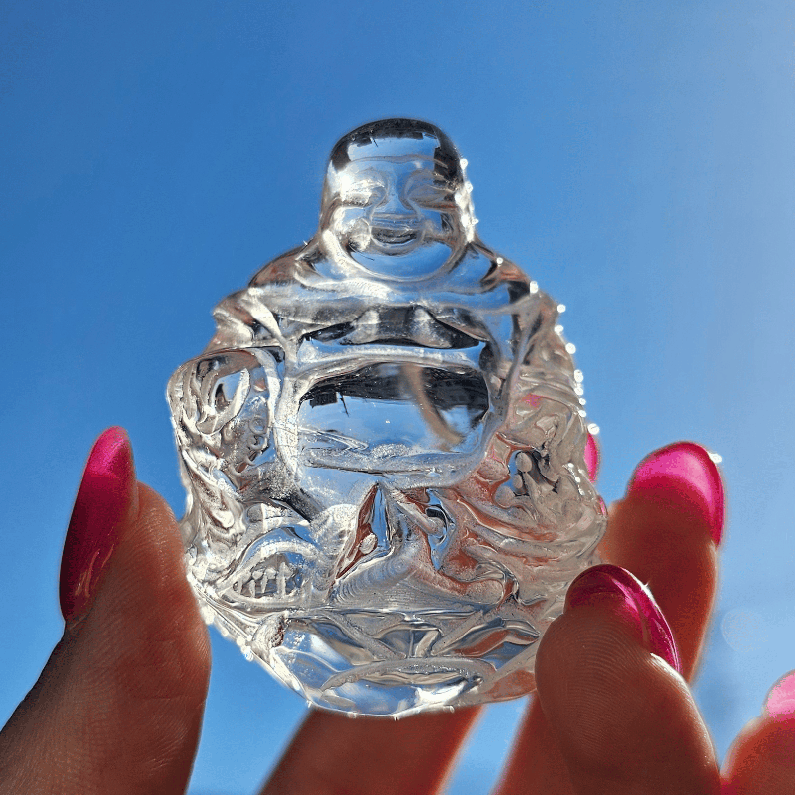 この布袋尊が、パワフルな水晶の中に彫刻されることで、