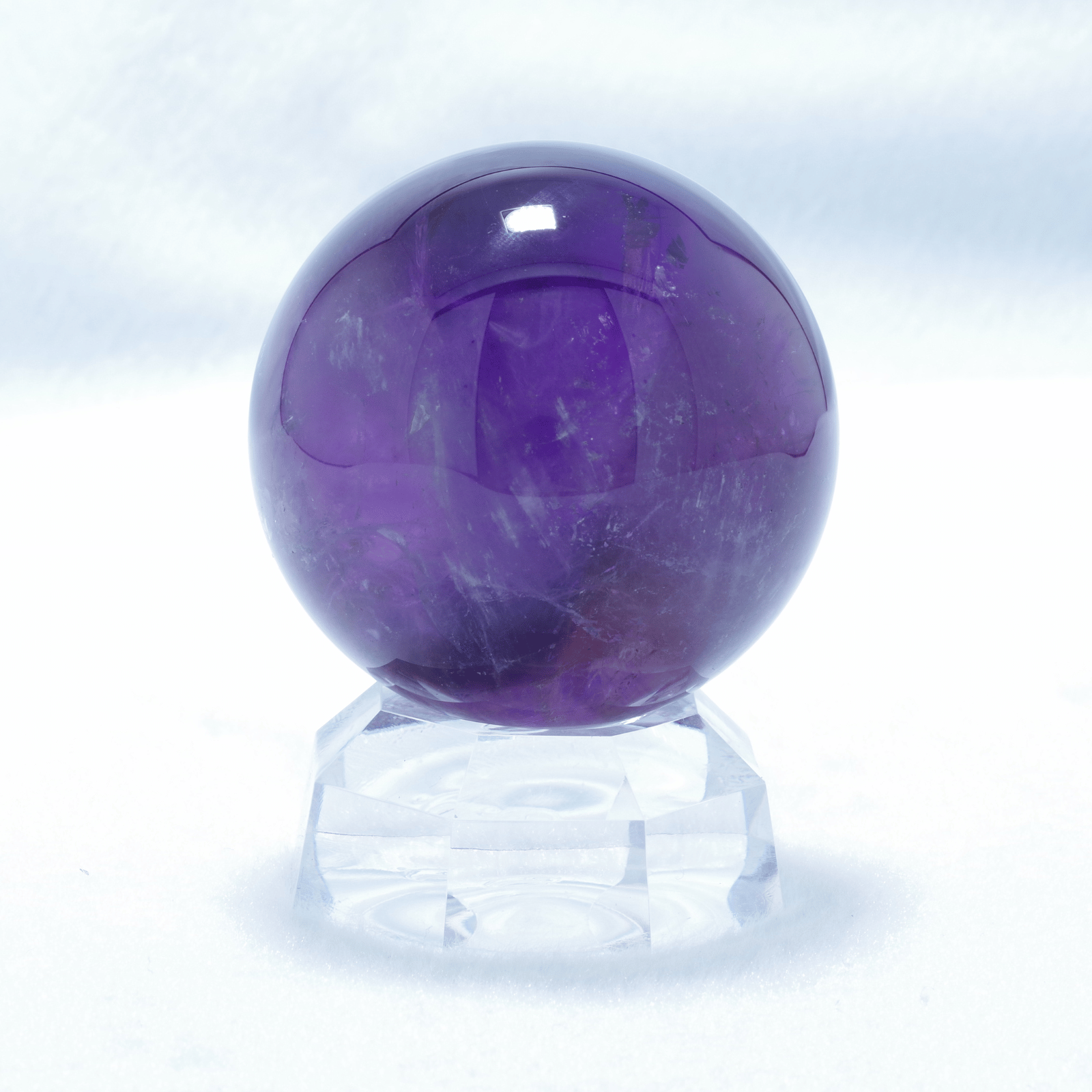 濃厚な紫色と透明感を兼ね備えた美しいアメジストスフィア。